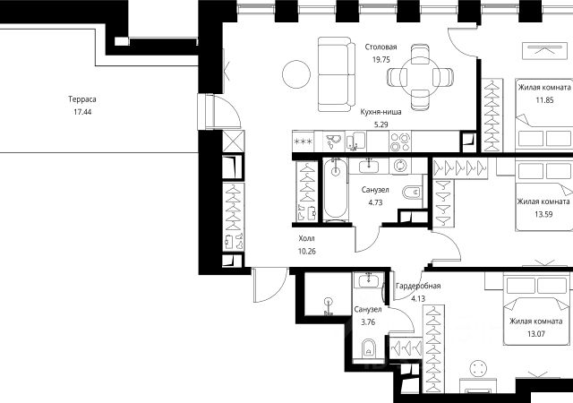 Прямая продажа от застройщика. Продаётся 3-комнатная квартира общей площадью 99.80 м² без отделки в ЖК City Вау, квартале Pacific, на 51-м этаже 59 этажного дома. Концепция жилого комплекса City Вау - настоящий город в городе с отлично развитой инфраструктурой и собственной благоустроенной набережной. На территории жилого комплекса расположено пять кварталов - Atlantic, Pacific, Indian, North, Cliff. Жилой квартал City Вау отличается оригинальной концепцией и выделяется среди других проектов такими характеристиками как: - Архитектура, - Виды из окон, - Природное окружение, вызывая гордость у жителей и восхищение у прохожих. Вся жизнь района Покровское-Стрешнево строится вокруг водных объектов: - Пойма реки Сходни с уникальной экосистемой, - Речка Химка и Химкинское водохранилище, - Москва-река, - Канал имени Москвы. Кругом вода, и местные с удовольствием этим пользуются. А сразу за рекой - центр водного спорта в Строгино с вейк-парком и яхт-клубами. Помимо воды, здесь очень много зелени: - Рядом Сходненский ковш памятник природы, естественный амфитеатр глубиной 40 метров; - Парк при усадьбе Братцево с фруктовым садом; - Дубовая роща "Маяк", - Алешкинский лес; - Лесопарк Покровское-Стрешнево с пляжами и бобрами. Главные транспортные артерии района: - Волоколамское шоссе, - Таганско-Краснопресненская линия метро и МЦД-2. Всего за 20 минут можно добраться до центра на машине или метро, а МЦД связывает ЖК City Вау с северными, восточными и юго-восточными районами. Компания MR предлагает своим клиентам специальные условия приобретения квартир в рамках программ ипотечного кредитования от банков-партнеров. 3-комнатная квартира в новостройке на шоссе Волоколамское в Москве.
