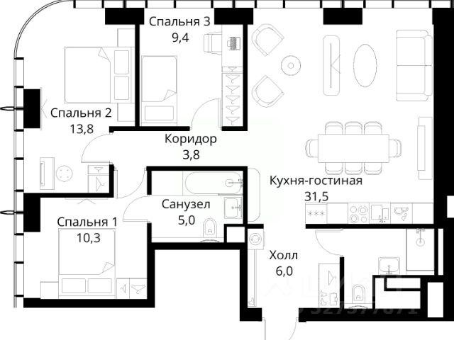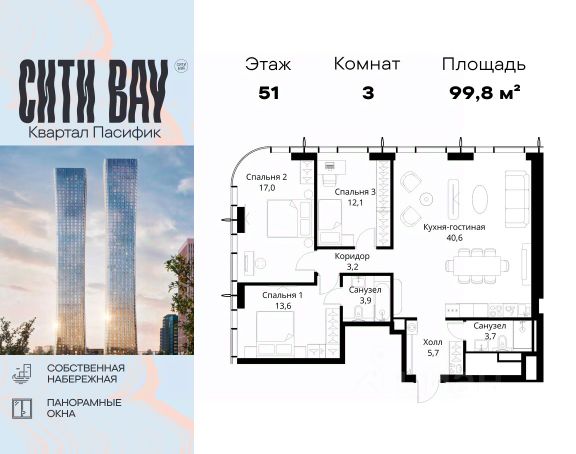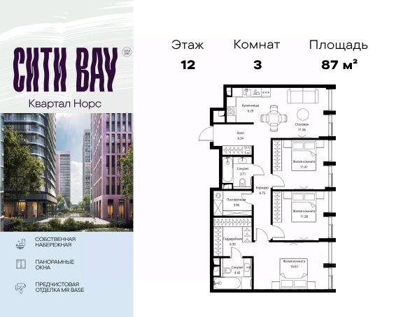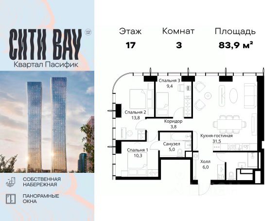 Прямая продажа от застройщика. Продаётся 3-комнатная квартира общей площадью 90.50 м² без отделки в ЖК Сити Бэй, квартале Пасифик, на 12-м этаже 59 этажного дома. Концепция жилого комплекса Сити Бэй - настоящий город в городе с отлично развитой инфраструктурой и собственной благоустроенной набережной. На территории жилого комплекса расположено пять кварталов - Атлантик, Пасифик, Индиан, Норс, Клиф. Жилой квартал Сити Бэй отличается оригинальной концепцией и выделяется среди других проектов такими характеристиками как: - Архитектура, - Виды из окон, - Природное окружение, вызывая гордость у жителей и восхищение у прохожих. Вся жизнь района Покровское-Стрешнево строится вокруг водных объектов: - Пойма реки Сходни с уникальной экосистемой, - Речка Химка и Химкинское водохранилище, - Москва-река, - Канал имени Москвы. Кругом вода, и местные с удовольствием этим пользуются. А сразу за рекой - центр водного спорта в Строгино с вейк-парком и яхт-Клубами. Помимо воды, здесь очень много зелени: - Рядом Сходненский ковш памятник природы, естественный амфитеатр глубиной 40 метров; - Парк при усадьбе Братцево с фруктовым садом; - Дубовая роща "Маяк", - Алешкинский лес; - Лесопарк Покровское-Стрешнево с пляжами и бобрами. Главные транспортные артерии района: - Волоколамское шоссе, - Таганско-Краснопресненская линия метро и МЦД-2. Всего за 20 минут можно добраться до центра на машине или метро, а МЦД связывает ЖК Сити Бэй с северными, восточными и юго-восточными районами. Компания MR предлагает своим клиентам специальные условия приобретения квартир в рамках программ ипотечного кредитования от банков-партнеров. 3-комнатная квартира в новостройке на шоссе Волоколамское в Москве.
