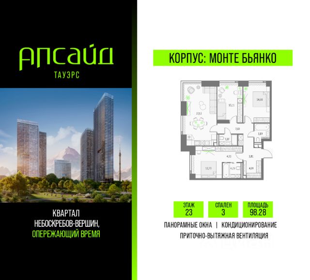 Продаётся 3-комнатная квартира площадью 85.56 кв.м на 4 этаже 46 этажного корпуса Монте Бьянко в квартале небоскребов "Апсайд Тауэрс". В квартире предчистовая отделка, с видом на Корпус Олимп, корпус Эльбрус, Бизнес-парк Останкино, прогулочный бульвар, детский сад, школу. Номер квартиры Г0413. На первых этажах корпуса Монте Бьянко разместятся: фитнес студия, салон красоты, центр превентивной медицины, образовательные классы, книжный магазин, аптека, фермерская лавка, а также келлеры для хранения сезонных вещей. В приватном закрытом дворе разместятся разнообразные площадки для прогулок, игр и отдыха. Визитной карточкой двора станет уникальная биометрическая игровая пещера со сказочными тоннелями, горками и космическими "мягкими" камнями с неизведанных планет. Планету Земля дети смогут исследовать в павильоне круглый год: объемная крыша укроет от солнца и дождя. Игровая пещера будет реализована в стиле "эмоциональная архитектура". "Апсайд Тауэрс" - технологичный квартал строится в динамично развивающемся Бутырском районе, в 3 мин. от метро, в 5 мин. от ТТК. На территории 7 га возводится 5 высотных башен от 19 до 58 этажей, названных в честь главных вершин земли. Квартиры с панорамными окнами в пол, высокими потолками и современными инженерными решениями. В проекте: - приточновытяжная вентиляция (воздух по качеству не уступает горному); - пятиступенчатая очистка воды с сохранением полезных минералов; - центральное кондиционирование; - внутрипольные конвекторы; - системы безопасности и мониторинга микроклимата; - высокоскоростной интернет на всей территории; - подземный паркинг с зарядками для электрокаров. Социальная инфраструктура: - Upside Клуб (более 2 000 м²) — спацентр на 47м этаже башни "Атлас" (джакузи, сауна, залы для релаксации и йоги), барбекюпатио, гостиная с камином и роялем, коворкинг, переговорные, домашний кинотеатр и др.; - смотровые террасы с видами на город, парки, Останкинскую башню, ВДНХ, Ботанический сад и МосквуСити; - ландшафтный парк 2,5 га с сенсорным садом, игровыми и спортивными площадками; - государственная школа и детский сад; - более 15 000 м² коммерческой инфраструктуры. Бутырский район развивается и станет новым деловым районом Москвы. По программе "Индустриальные кварталы" на территории Огородного проезда построят образовательные и спортивные учреждения, торговые центры, кафе, банки и общественноделовые здания. Рядом — Парк Останкино, ВДНХ, Сокольники, Гончаровский парк, дизайнзавод Flacon и "Хлебозавод". До центра Москвы на авто — 15 мин. Застройщик: ООО "СЗ "КДевелопмент" (Upside Девелопмент). Продается 3-комнатная квартира с отделкой от застройщика в районе Бутырский в Москве.