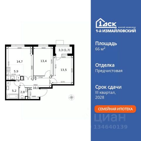 Продаётся 3-комн. квартира площадью 73,5 кв.м на 6 этаже 16 этажного дома (Корпус 1.4, Секция 4) проекта ПИК 2-й Иртышский. Светлый просторный подъезд на уровне земли, функциональная планировка, большие окна, c отделкой. "2-й Иртышский" возводится на востоке Москвы, между тремя станциями метро "Щелковская", "Черкизовская" и "Бульвар Рокоссовского". Проект включает жилые корпуса с индивидуальной архитектурой, школу и детский сад. Проект состоит из зданий разной высоты и разной по характеру архитектуры. Узнаваемой доминантой квартала станет башня из стекла и металла, напоминающая водопад. Квартал расположен в окружении нескольких знаковых рекреационных зон столицы. Вам понадобится всего несколько минут, чтобы оказаться в атмосфере спокойствия и слияния с природой. Всего 15 минут пешком, и вы в "Сиреневом саду", а дорога до национального парка "Лосиный остров" или Гольяновского пруда займёт 6 минут на авто. До Черкизовского детского парка и "Усадьбы Измайлово" можно доехать за 15 минут. До станции "Черкизовская" можно дойти пешком за 25 минут или доехать на общественном транспорте за 20. Дорога до станций "Бульвар Рокоссовского" и "Щёлковской" займёт 25 минут на общественном транспорте. Автомобилисты оценят удобные выезды на Щёлковское шоссе и СВХ. Путь до МКАД займет около 14 минут, до ТТК - 20. Артикул 988124 (Застройщик ООО "СЗ "Л-Девелопмент") Купить 3-комнатную квартиру с отделкой от застройщика в районе Гольяново в Москве.