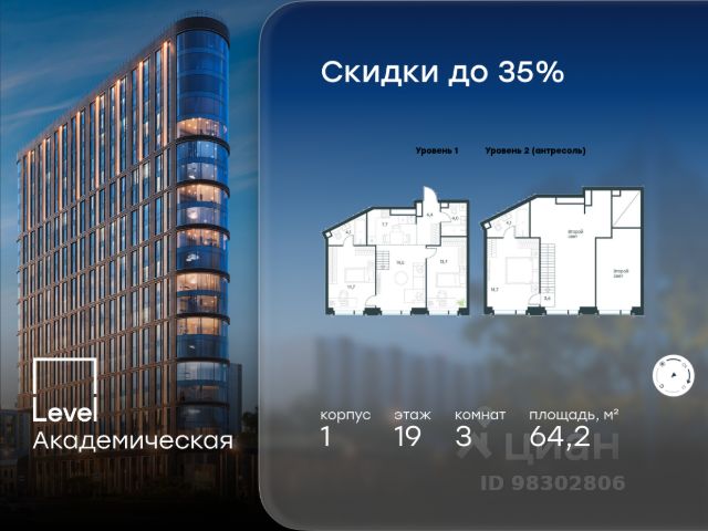 Цена указана с учётом скидки при 100%-й оплате, несубсидированной ипотеке, рассрочке (кроме программы "Рассрочка 0%"). В Академическом районе продаётся 3-комнатная квартира площадью 93.80 кв.м без отделки. Квартира расположена на 15-м этаже 19-этажного жилого комплекса бизнес-класса Level Академическая (компания Level Group). Отличная транспортная доступность: - 1 мин. пешком до станции метро "Академическая"; - 4 мин. на автомобиле до ТТК; - 8 мин. на автомобиле до Садового кольца; - 13 мин. на автомобиле до Кремля. Продуманный архитектурный проект: - современная архитектура от бюро UNK project; - высокие потолки в квартирах до 6,62 м; - окна в пол высотой 2,5-2,68 м с панорамным видом на МГУ, Москва-Сити и другие доминанты Москвы; - квартиры с моллированным остеклением - радиусные окна открывают увеличенный угол обзора; - более 20 вариантов планировочных решений; - уникальные квартиры с собственным патио и возможностью обустройства дровяного камина; - квартиры сдаются без отделки, что открывает свободу для создания интерьера по своему вкусу. Расположение: Камерный проект из 1 корпуса расположен тихом зеленом районе Москвы, в непосредственной близости к центру города. В округе построено 80 детских садов, 50 школ и 30 вузов, 7 из которых входят в топ100 вузов России: МГУ, МГИМО, РАНХиГС, МИСИС, РУДН, РЭУ им. Плеханова и РГУ нефти и газа им. Губкина. Этот район буквально утопает в зелени парков, начиная с уютного Академического в 6 минутах пешком и заканчивая одним из крупнейших в городе парком 50-летия Октября (12 минут на автомобиле). Общая площадь природных объектов в радиусе 2-6 км от дома - 476,5 га. Внутренняя инфраструктура: На территории Level Академическая откроется собственный торговый центр, а для отдыха жителей будут созданы общественные пространства: комфортное лобби с дизайнерской отделкой, окнами в пол и потолками высотой 4,5 м, а также две благоустроенные зоны - территория по периметру здания и пространство на стилобате. Во дворе на стилобате предусмотрены детская и спортивная площадки, коворкинг и лаунж-зона на открытом воздухе. Стилобат украсят скульптуры животных - жирафа, зайца и волка, которые станут ярким акцентом внутреннего двора Level Академическая, подчеркивая близость к музею Дарвина. Процент озеленения территории - 58%. Технологии и безопасность: Жителей Level Академическая не коснется ежегодное отключение горячей воды благодаря собственным центральным водонагревателям. Безопасность гарантирует круглосуточная охрана, безлимитный Wi-Fi, круглосуточное видеонаблюдение. Удобное перемещение внутри комплекса будут обеспечивать 5 лифтов с доступом в паркинг с жилых этажей. Продается 3-комнатная квартира с отделкой от застройщика рядом с метро Академическая.