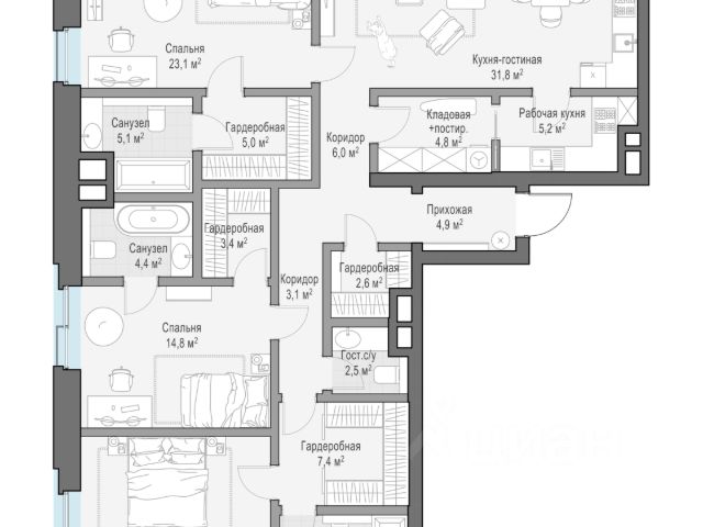 Николь Клуб по своей архитектуре обладает неординарной коллекцией планировочных решений. Среди, которых двухуровневые пентхаусы с вторым светом, видовые квартиры с уникальным панорамным остеклением с видом на Кремль, квартиры со сложной геометрией, отвечающие запросу на нестандартные интерьерные решения.