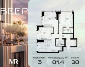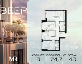 Прямая продажа от застройщика. Продаётся 3-комнатная квартира общей площадью 75.70 м² без отделки в ЖК Веер на 2-м этаже 46 этажного дома. ВЕЕР — это жилой квартал бизнес-класса в престижном ЗАО Москвы всего 5 минут до Кутузовского проспекта. 15 минут — до центра столицы, Переделкино или Сколково. Рядом — крупнейший природный заказник "Долина реки Сетунь", а в пешей доступности — новая проектируемая станция метро. Здесь всё необходимое для жизни находится в шаговой доступности: например, офисный и спортивный кластеры, государственная рейтинговая школа 1329 и детский сад, фитнес и ресторанный бульвар. • Концепция 15-минутного города ВЕЕР реализует идею "города в городе": внутри квартала появятся офисный и спортивный кластеры, своя государственная рейтинговая школа 1329 и детский сад, центры творчества, ресторанный бульвар, фитнес и спа-центр с 25-метровым бассейном. Здесь будет всё — от салонов красоты и банков до медицинских центров и фуд-холла. Для активного отдыха — 25-километровый беговой маршрут, школа единоборств и йога-студия прямо в комплексе. • Архитектура и планировки Первая очередь ВЕЕР.1 — это 5 разновысотных башен, объединённых стилобатом с благоустроенным закрытым двором без машин. Авторская архитектура от бюро СПИЧ, известного по таким знаковым проектам как новое здание Третьяковской галереи в Москве и Музей архитектурного рисунка в Берлине, создаёт динамичный силуэт квартала. Более 200 типов продуманных планировок: квартиры с видовыми террасами, мастер-спальнями, панорамными окнами и даже смотровой площадкой на крыше. Малоэтажные уютные секции с 25 квартирами на этаже и с эксплуатируемой кровлей подойдут тем, кто ищет уединения. Предчистовая отделка white box по стандартам MR обеспечивает быстрое заселение и тишину в корпусах. • Элегантные лобби и зеленые дворы В каждом лобби — дизайнерская отделка от Jaime Beriestain Studio, премиальные материалы, уютные зоны для общения, коворкинги, студии йоги, лапомойки и просторные колясочные. В закрытых дворах царит гармония природы и жизни: всесезонный чайный домик, кленовая роща, площадь с прудом и беседкой, амфитеатром и библиотекой. Для детей — образовательные игровые площадки "Археология" и "Ботаника". • Спорт и досуг Трёхуровневый фитнес и СПА-центр на 4000 кв.м с 25-метровым бассейном под прозрачной крышей, кардио- и силовыми залами, а также пространством для групповых занятий — всё это прямо в доме. • Инженерия и безопасность ВЕЕР оснащён умной инженерией: скоростные лифты премиум-класса Sword, современная система вентиляции, двухуровневый паркинг на 695 машино-мест с прямым доступом из лобби, зарядками для электромобилей, кладовыми и велопарковками. Отдельный вход для курьеров и современные системы охраны обеспечивают абсолютную безопасность жителей.