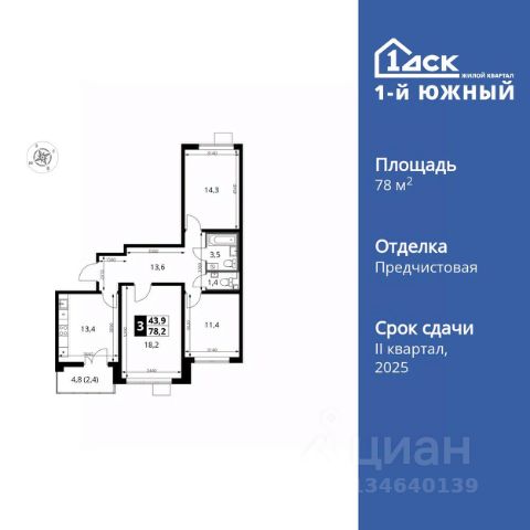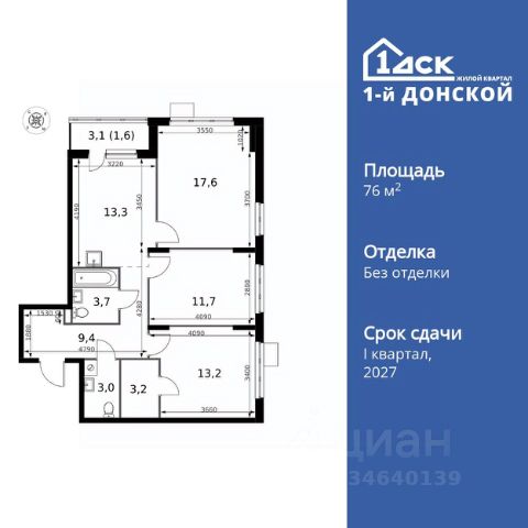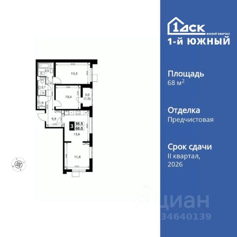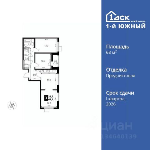 • ✓ В базе Циан 162 3-комнатных квартир в новостройке от застройщика рядом с метро Битца