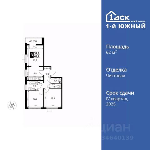 • ✅ Минимальная площадь: 62,1 м²