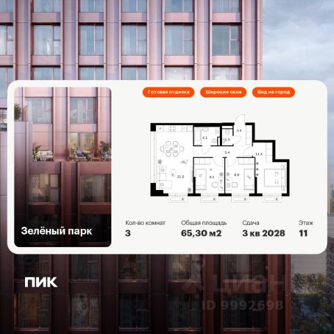 Продаётся 3-комн. квартира площадью 66,2 кв.м на 4 этаже 21 этажного дома (Корпус 5.2, Секция 1) проекта ПИК Зелёный парк. Светлый просторный подъезд на уровне земли, функциональная планировка, большие окна, c отделкой. Большой квартал с оригинальной архитектурой в обжитом районе Зеленограда. От него до станции МЦД-3 "Зеленоград-Крюково" — 20 минут пешком, до Кутузовского шоссе можно доехать на машине за 3 минуты, а до Пятницкого шоссе — за 5 минут. Характер "Зелёного парка" отражён в архитектуре. Квартал состоит из уютных разноэтажных блоков с оригинальными акцентами. Цветовая палитра проекта спокойная и сдержанная: оттенки белого и коричневого сочетаются с пастельным розовым и мятным. В проекте запланированы также два детских сада, две школы и паркинг. На первых этажах откроются магазины, кафе и другие сервисы — чтобы купить кофе и свежий хлеб к завтраку, можно будет просто спуститься на лифте. В уютных дворах-парках появятся места для отдыха, детские площадки, кофейни и зоны отдыха. Рядом — Зеленоградский лес, Парк Победы и Михайловский пруд, где можно гулять и заниматься спортом. У жителей "Зелёного парка" будет возможность получить московскую прописку. Для любителей спорта в 10 минутах пешком от квартала — велодром с BMX-трассой, физкультурно-оздоровительный комплекс Горизонт, а также лыжероллерная трасса длиной около 3 км. Артикул 1030744 (Застройщик АО "СПЕЦИАЛИЗИРОВАННЫЙ ЗАСТРОЙЩИК "ЗЕЛЕНОГРАДСКИЙ")