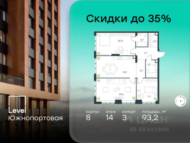 Цена указана с учётом скидки при 100%-й оплате, несубсидированной ипотеке, рассрочке (кроме программы "Рассрочка 0%"). В северной части района Печатники продается 3-комнатная квартира площадью 81.70 кв.м с отделкой white box. Квартира расположена на 5 этаже 49-этажного корпуса 9 в жилом комплексе комфорт-класса Level Южнопортовая (компания Level Group/Левел групп). Отличная транспортная доступность: - 10 мин. пешком до станции метро "Кожуховская"; - 20 мин. пешком до станции МЦК "Дубровка"; - 3 мин. на авто до ТТК; - 13 мин. на авто до Садового кольца; - 15 мин. на авто до Бульварного кольца. Продуманный архитектурный проект: - авторская архитектура от бюро СПИЧ; - уникальные виды на реку, парки и достопримечательности города; - высота потолков в квартирах до 6 м; - окна высотой до 1,87 м с высоким коэффициентом сопротивления теплоотдаче. Расположение: Level Южнопортовая строится в северной части района Печатники - самой приближенной к центру. Здесь будет сформирован новый район "Южный порт", где построят крупный жилой и общественно-деловой центр, аналогичный Москва-Сити. В течение 10-12 лет в этом месте появятся не только жилые дома, но и развитая инфраструктура для жизни и работы. А еще совсем рядом находится набережная Москвы-реки, где планируется построить причалы для речных трамвайчиков и канатную дорогу. Уже сейчас вокруг жилого комплекса работают десятки магазинов и торговых центров, рядом расположено 6 парков, среди которых музей-заповедник "Коломенское". В 10 минутах пешком - 2 муниципальных и 2 частных детских сада, 7 общеобразовательных школ. Внутренняя инфраструктура: Для отдыха жителей в каждом корпусе предусмотрено лобби, оснащенное местами для отдыха, гостевыми санузлами и лапомойками, а в отдельных корпусах - камином. За счёт больших окон и высоких потолков пространства будут наполнены воздухом и светом. На первых этажах жилого комплекса откроются магазины, салоны красоты, фитнес-центр. Для детей строятся собственные детский сад и школа. Благоустройство: Внутренний двор комплекса разработан совместно с бюро GAFA. Основная идея - создать аналог Центрального парка в Нью-Йорке, гармонично сочетая высотные здания и большое изолированное парковое пространство. Вся площадь двора-парка будет огорожена и составит более 2 га, из которых 45% - озеленение. Одним из самых важных ландшафтных элементов здесь станет небольшая речка, наполняющаяся во время дождя. Вокруг неё появится сеть из островов, внутри которых расположатся тематические зоны спорта и отдыха. Технологии и инженерия: - автоматическая передача в управляющую компанию показаний квартирных счётчиков; - телефонная связь, телевидение и интернет на базе оптической мультисервисной сети; - гостевой Wi-Fi в лобби и на территории двора; - единый ключ доступа для входа на территорию комплекса. 3-комнатная квартира с отделкой от застройщика рядом с метро Кожуховская.