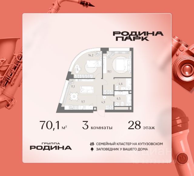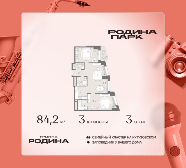 О квартире Продаётся трехкомнатная квартира общей площадью 85.61 кв. м. с отделкой на выбор: черновая, White Box. Квартира на 7 этаже корпуса 4.2 в жилом комплексе бизнес-класса "Среда на Кутузовском". До метро "Кунцевская" 10 минут пешком. Исторический зелёный район "Среда на Кутузовском" строится в Кунцево - историческом и экологически чистом районе Москвы. Здесь нет крупных производств, много лесных массивов и роза ветров, которая обеспечивает приток чистого воздуха. Район наполнен жизнью и уже развит: много детских садов и школ, поликлиники, магазины, кафе, спортивные объекты, парки. - 10 минут пешком до станции метро "Кунцевская". - 5-8 минут на машине до Кутузовского проспекта и Можайского шоссе и 10-15 минут до Рублёвского и МКАД. - 15 минут езды до Крылатских холмов, Суворовского парка и заказника "Долина реки Сетунь". Акции и спецпредложения - Выгода 12%: если внести 100% оплату или оформить семейную ипотеку под 6%. Действует до 13 апреля. - Низкие ставки по ипотеке: 0,1% в первый год или 0,11% в первые два года кредита. - Трейд-ин от "Среды": можно обменять свою текущую квартиру на новую. - Ипотека для семей с детьми: если ребёнку до 7 лет, предлагаем льготную ставку 3,5% О жилом комплексе "Среда на Кутузовском" - новый квартал с башнями от 12 до 44 этажей, окружённый лесными массивами и историческими усадьбами старой Москвы. Во внутреннем дворе есть водоём, многоуровневые зоны с детскими и спортивными площадками, коворкинг на свежем воздухе и локации для уединённого отдыха. Особенности - Архитектура с многослойными фасадами. - Квартиры с террасами и мастер-спальнями. - Окна в пол на всех этажах. - Общественные лаунж-гостиные. - Собственный ландшафтный парк во дворе. - Зоны барбекю и площадки для отдыха у воды. - Умный подземный паркинг. - Стрит-ритейл на первых этажах.