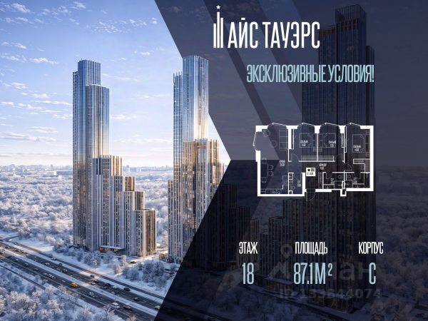 3-комн. квартира в ЖК "Ever" на 4 этаже в 34 этажном здании Корпус 5. Общая площадь: 60.1 кв.м., жилая: 41.9 кв.м. Высота потолков 3.00 м.