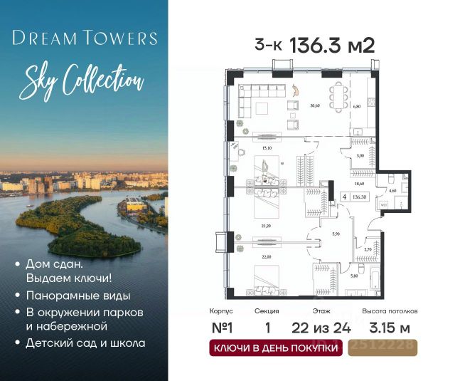 Купить 3-комнатную квартиру от застройщика в новостройке рядом с метро Остров мечты