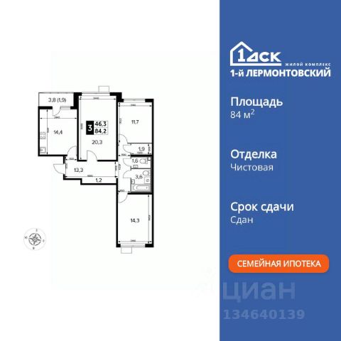 Прямая продажа от застройщика! Жилой Комплекс класса Комфорт Плюс. Продаётся 3-к квартира номер 160 общей площадью 84.2 кв.м. на 24-м этаже 24 этажного здания. Чистовая отделка. Цена с учётом скидки. Особенности квартиры: - Организуем показ в удобное для вас время! - Просторная спальня, в которой можно разместить большую кровать. - Распашная планировка - отличное сочетание удобства и свободы. - Увеличенная ширина окна/окон - больше света и визуального простора. - Гостевой санузел - комфорт и удобство для ваших гостей. - Просторная кухня - место для семейных ужинов и кулинарных экспериментов. - Линейная кухня - функциональность и практичность в одном решении. - Ниша под шкаф - компактное и удобное место для вещей. - Кладовая - дополнительное пространство для хранения. - Лоджия - уютное место для отдыха и тишины. Квартира с чистовой отделкой. Раскройте свою индивидуальность в создании своего уникального проекта, а трудоемкий ремонт мы возьмем на себя! Вы идете в ногу со временем и предпочитаете современные, универсальные дизайнерские решения? Или вы любитель строгой лаконичной классики? Тогда наши интерьеры придутся вам по душе! Выбирайте то, что ближе лично Вам и реализуйте свои задумки вместе с нами! Информация о комплексе: "1-й Лермонтовский": современные подъезды, двор без машин и подземный паркинг. ЖК гармонично вписан в зелёное окружение Люберецкого парка и Жулебинского лесопарка, гранича с развитыми районами Некрасовка и "Красная Горка". Удобная транспортная доступность и активный отдых на природе создают баланс между спокойствием и динамикой городской жизни. Транспортная доступность: В шаговой доступности ж/д станция "Люберцы-1". 5 минут на автомобиле до станций метро "Некрасовка", "Котельники", "Лермонтовский проспект" Внутренняя инфраструктура: На территории комплекса создана безбарьерная среда для свободного перемещения. Здесь есть всё для активного отдыха и спокойного времяпрепровождения: игровые площадки для детей, зоны воркаута, спортивные комплексы и пешеходные аллеи. В шаговой доступности: 4 школы, 7 детских садов, спортивные и танцевальные секции, поликлиники, а также магазины включая "Ашан" и крупные ТЦ. Идеальная инфраструктура для комфортной жизни. Квартира с чистовой отделкой: ваш стиль без ремонта. Выбирайте современный дизайн или классику - мы воплотим ваши идеи. Готовые интерьеры для уникального дома.