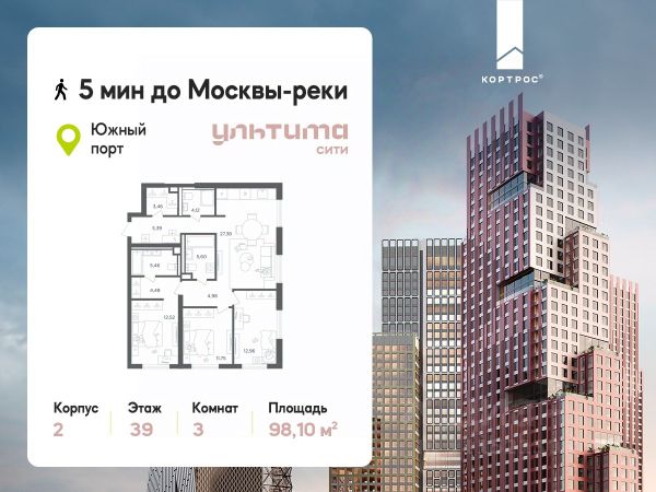 В динамично развивающемся районе Москвы, всего в 300 метрах от метро и в пешей близости от нового городского порта с протяженной набережной 13 км, свободной от автомобилей, продается 3-комнатная квартира площадью 59.90 м². без отделки. Квартира находится в корпусе жилого комплекса бизнес-класса "Адмирал", расположенного по адресу г. Москва, ул. Шоссейная, 4Д. (Застройщик - "Галс Девелопмент"). Новый амбициозный проект "Адмирал" станет частью одного из самых перспективных районов будущего - "Сити-2". В пешей доступности от современных башен Вас ждут живописные Люблинские пруды, 2 усадьбы с уникальной историей и уютный парк "Печатники" у Перервинского плёса. Район имеет отличную транспортную доступность: • 300 метров до станции метро "Печатники"; • Удобная пересадка на БКЛ и станцию МЦД-2; • 10 минут на машине до ТТК; • 15 минут до Садового кольца. Архитектура корпусов отличается динамичностью облика благодаря переменной этажности: высокие башни сочетаются с домами средней этажности. Изящным украшением становятся арочные витражи. Интеллигентный и современный стиль "Адмирала" продолжается в гранд-лобби: пастельные оттенки интерьера и фактурные элементы декора создают атмосферу безмятежного отдыха, особое ощущение простора дарят высокие потолки до 4 м и витражные окна. В домах предусмотрено от трех до шести скоростных лифтов, каждый из них спускается на любой этаж подземного паркинга и обладает удобными сенсорными панелями управления и низким уровнем шума. Благоустроенный двор площадью 5000 кв.м. украсят десятки видов гипоаллергенных растений. Здесь можно совершить приятный променад, по пути заглядывая за свежезаваренным кофе, уединиться за ноутбуком в комфортном коворкинге, занять ребенка играми в двухъярусном плейхабе или помедитировать на специальной площадке для йоги. Мягкий свет декоративных фонарей подчеркнет живописность местности, а чувство безопасности гарантируют круглосуточные системы видеонаблюдения. Дополнительные преимущества: • Высокие потолки от 2,9 до 3,25 м; • Бизнес-центр, школа и детский сад прямо на территории дома; • Подземный двухуровневый паркинг на 1955 машино-мест; • Кладовые помещения в тёплом контуре на 2м этаже; • Стрит-ритейл на первых этажах.