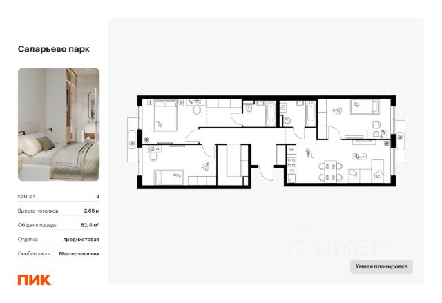 Продается трехкомнатная квартира с отделкой в 7 фазе города-парка "Первый Московский". Общая площадь квартиры - 84,5 кв. м, этаж 15 из 20. Срок сдачи - 1 квартал 2027 года. Тип дома - монолитный. Цена указана при 100% оплате. Новый корпус состоит из 3 секций: - 1 и 2 секции - с отделкой White Box с возможностью приобретения чистовой отделки за дополнительную плату - 3 секция - без отделки Город-парк "Первый Московский" расположен всего в 7 км по Киевскому шоссе (Новая Москва). Из города-парка прямой выезд на Киевское шоссе и трассу Солнцево-Бутово-Варшавское шоссе. ТРАНСПОРТНАЯ ДОСТУПНОСТЬ: - 5 мин. на личном автомобиле или 10 мин. на автобусе 189 и 147 до станции метро "Филатов Луг" - 25 мин. пешком до станции метро "Филатов Луг" ИНФРАСТРУКТУРА: Около 7 фазы запланировано строительство детского сада, школы, 2 многоуровневых паркингов. Также на территории проекта есть все необходимые объекты действующей социальной и бытовой инфраструктуры: 8 детских садов, 6 школ, ТЦ, магазины, паркинги, аптеки и др. БЛАГОУСТРОЙСТВО: - Дворы без машин - Игровые зоны для детей, зоны для занятия спортом, зоны для отдыха с навесами/качелями - Детские площадки разделены по возрастным группам - Пешеходный и веломаршрут с двухполосной велодорожкой 2,5 м в ширину - Озеленение с растениями всесезонного цветения ОСОБЕННОСТИ АРХИТЕКТУРЫ: В каждой секции 3 корпуса предусмотрены: - колясочные во входных группах - кладовые помещения с -1 по 20 этажи - коммерческие помещения на 1 этажах - по 4 лифта: 2 пассажирских, 2 грузовых - видеонаблюдение, установленное в холлах первых этажей, у подъездов и на прилегающей территории АВТОРСКИЙ ДИЗАЙН: Входные группы выполнены по авторскому дизайну, оснащены системой "тёплый пол". В каждой входной группе будет располагаться комфортабельная зона ожидания с мягким диваном, акцентными пуфами и столиком.
