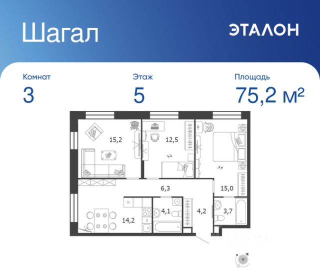 Продается 3-к квартира без отделки в ЖК "Шагал". Общая площадь квартиры — 100.1 кв. м, этаж 2 из 7. Тип дома — монолитный. Цена указана при 100% оплате. Квартал Шагал — крупнейший проект комплексного освоения в Москве. В проекте реализуется продуманная система маршрутов. Еда, покупки, услуги, прогулки, спорт, образование, работа и развлечения — все будет находиться рядом с домом: принцип 15-минутной доступности инфраструктуры и сервисов. Разнообразие и продуманность пешеходных маршрутов, а также короткие расстояния между основными точками притяжения мотивируют резидентов Шагал с удовольствием передвигаться по району пешком, не выпадая из ритма большого города. Продуманная транспортная сеть района и безопасный скоростной режим создают комфортные условия для перемещений любым способом: на автобусе, машине, самокате или велосипеде. Не нужно выезжать из района, чтобы получить комфорт и сервис самого высокого современного стандарта: все необходимые услуги, инфраструктура, парки и вторая по протяженности набережная в городе — на расстоянии 15-минутной прогулки от вашего дома. Квартал Шагал станет первым в Москве жилым районом, где будут комплексно реализованы инновационные подходы в проектировании и строительстве зданий. Архитектурная композиция состоит из домов отличающегося типа. Высотные башни-доминанты с видовыми квартирами, дома пониже, растворяющиеся в спокойствии внутренних двориков, малоэтажные камерные таунхаусы и разноэтажные дома с лоджиями на первой береговой линии соединяются в одно эстетичное современное произведение. В результате создаётся насыщенное идентичное пространство, подчёркнутое плавностью природных форм, наполненное светом, воздухом и свободой.