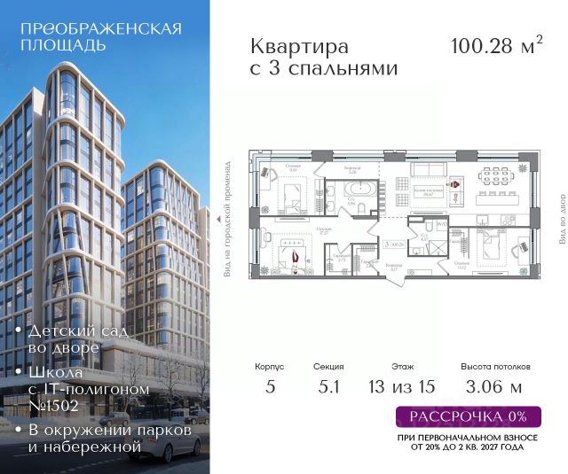 Рассрочка 0% от застройщика. Первоначальный взнос от 20%. Предложение действует до 31 января 2026 года Квартира на 3 этаже в жилом комплексе премиум-класса "Преображенская площадь". Общая площадь: 74.1 кв.м. Проект премиум-класса в историческом районе Москвы. До метро "Преображенская площадь" 3 минуты пешком. Квартиры сдаются без отделки и в свободной планировке, чтобы жители могли оформить пространство с учетом своей индивидуальности. Высота потолков от 3,15м, широкоформатное остекление, 3-5 квартир на этаже. Система Умный дом. Дизайнерские лобби. Внутренний двор 1,5 га функциональное и безопасное пространство для игр, работы и занятий спортом. Пешеходный променад для прогулок. Дома переменной этажности. Есть подземный паркинг. Жилой комлекс находится в окружении парков Сокольники, Черкизовский, Измайловский, заповедника Лосиный остров и ВДНХ, а также вблизи пешеходной набережной. Комфортная удаленность от центра: 7 минут на автомобиле до ТТК, 8 минут до Садового кольца, 25 минут до Кремля. Продается 3-комнатная квартира с отделкой от застройщика в районе Преображенское в Москве.