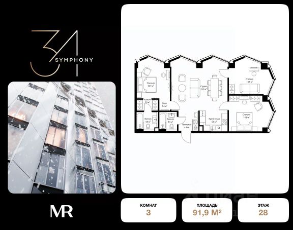 Дом сдан. Ключи в день покупки! В продаже 3-комнатная квартира площадью 85.60 м² с предчистовой отделкой на 10 этаже 43 этажного дома в корпусе Сильвер. ЖК Симфония 34 - концептуально новый жилой комплекс премиум-класса с подземной парковкой, состоит из четырех башен высотой 36 - 54 этажа. Квартиры сдаются с базовой (предчистовой) отделкой MR BASE или дизайнерской чистовой отделкой MR READY. Высота потолков 3 - 6 метров, окна высотой до 2,6 м. Более 100 кладовых в подземной части ЖК и более 500 на этажах. Безопасность - Система контроля входа на территорию комплекса, биометрия - Система автоматического водяного пожаротушения и противопожарного водопровода, система пожарной вентиляции - Доступ на парковку при помощи системы распознавания автомобильных номеров, карточка для контроля доступа резидентов - Система видеонаблюдения - Круглосуточная связь через приложение, телефон, голосовые сообщения с охраной, консьержем, call-центр. Расположение Пешком - 6 минут до метро "Дмитровская" - 15 минут до Тимирязевского парка На машине - 5 минут до Савеловского вокзала и Аэроэкспресса в Шереметьево - 10 минут до Москва-Сити и Садового кольца Благоустройство - 70% территории отведены под зеленые насаждения и ландшафтный дизайн - Приватный Японский сад - Детские площадки с зонированием по возрасту - Clubhouse для резидентов - Wellness & SPA - Зона для пикника, зона с гамаками - Центральное лобби, ресторан, коммерческие помещения - Дополнительный вход/выход на территорию комплекса Окружение - В 10 минутах от Symphony 34 находится дизайн-завод Flacon, где регулярно проходят культурно-образовательные и развлекательные мероприятия - Тимирязевский парк расположен в 850 м. Площадь парка 232 га - Рядом расположен парк "Дубки", площадью 16,5 га. - В 15 минутах расположен Хлебозавод 9. Здесь находятся шоурумы брендов, кафе разных кухонь мира, образовательные проекты и площадки для мероприятиКомпания MR предлагает своим клиентам специальные условия приобретения квартир в рамках программ ипотечного кредитования от банков-партнеров. Продается 3-комнатная квартира с отделкой от застройщика в районе Савеловский в Москве.