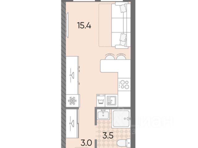 • Угловая кухня-гостиная 18,4 м² с тремя окнами — редкое и невероятно ценное преимущество. Представьте: утреннее солнце в одной части комнаты, вечернее — в другой. Это пространство, наполненное светом и воздухом, где можно организовать и кухонный остров, и обеденную группу, и зону отдыха с видом на квартал.