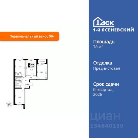 Продается трехкомнатная квартира в городе-парке "Переделкино Ближнее". Общая площадь квартиры - 81,2 кв. м, этаж 5 из 17. Срок сдачи - 3 квартал 2026 года. Тип дома - монолитный. ТОЛЬКО ДО 28 ФЕВРАЛЯ: - Рассрочка до 18 месяцев с первоначальным взносом от 10% - Ежемесячный платеж от 50 000 руб. *подробную информацию по скидкам и акциям уточняйте в отделе продаж. Город-парк "Переделкино Ближнее" расположен в 8 км от МКАД по Боровскому шоссе. ТРАНСПОРТНАЯ ДОСТУПНОСТЬ: - 10 минут пешком до МЦД-4 "Мичуринец" - 15 минут пешком до станции метро "Рассказовка" Солнцевской линии - 10 минут на машине до станции метро "Филатов Луг" Сокольнической линии - 30 минут до центра Москвы - Прямой выезд на дорогу Солнцево-Бутово-Варшавское шоссе, минуя жилую застройку всего ЖК БЛАГОУСТРОЙСТВО: 18 фаза строительства уникальна своим расположением - в шаговой доступности парк на Лукинской улицы, река Алёшинка. На территории 18 фазы строительства будут построены 2 монолитных жилых корпуса повышенного комфорта разной этажности 7, 17 этажей. А также многоуровневый паркинг на 300 м/мест. Вход в жилую часть корпусов каждой секции осуществляется с двух сторон - с наружного контура жилого дома и со стороны дворового пространства, предусмотрен безбарьерный доступ. ВНУТРЕННЯЯ ИНФРАСТРУКТУРА: В рамках данной фазы, для жителей предусмотрено создание пространства, свободного от машин - благоустроенные огороженные дворы с современными детскими и спортивными площадками, разделенными на зоны по возрастам. На территории проекта есть все необходимые объекты социальной и бытовой инфраструктуры: детские сады, школы, магазины, паркинги, аптеки, поликлиники, пожарная часть и др. АВТОРСКИЙ ДИЗАЙН: Современный монолитный дом переменной этажности 7 и 17 этажей. На фасаде предусмотрены корзины для установки кондиционеров. Входные группы домов выполнены по авторскому дизайну. Колясочные располагаются при входе, велопарковка на -1 этаже. 3-комнатная квартира в Новой Москве.