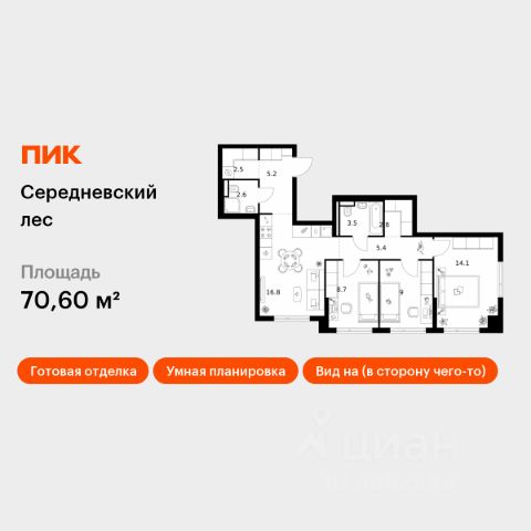 Продаётся 3-комн. квартира площадью 92,1 кв.м на 7 этаже 9 этажного дома (Корпус 4.3, Секция 5) проекта ПИК Середневский лес. Светлый просторный подъезд на уровне земли, функциональная планировка, большие окна, c отделкой. В 10 минутах на автомобиле находится станция метро "Внуково", а в 15 минутах — станции "Филатов Луг" и "Саларьево". От них до центра Москвы всего 3540 минут. На рейсовом автобусе от жилого квартала до метро "Филатов Луг" — 20 минут. На территории "Середневского леса" появилось общественное пространство с игровыми площадками, местами для отдыха, пешеходными маршрутами и велопарковкой — для прогулок, отдыха и встреч жителей квартала. Также внутри жилого квартала уже открыта школа на 1100 мест и детский сад для 325 малышей. В дальнейшем откроется ещё один сад для 340 детей. Артикул 966689 (Застройщик ООО "Специализированный застройщик Середнево") 3-комнатная квартира в новостройке с отделкой в поселении Филимонковское в Москве.