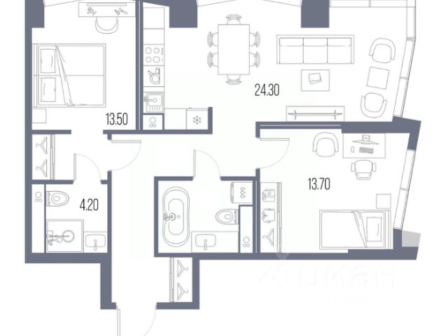 • ✅ Минимальная площадь: 69,4 м²