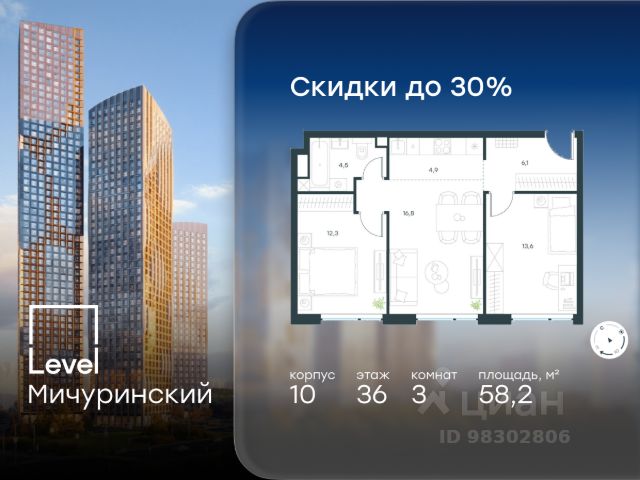 Этаж: 2, комнатность: 3 Площадь: 73.2 кв.м. Продаются апартаменты в многофункциональном комплексе бизнес-класса West Tower в ЗАО. 3 - комнатные апартаменты в West Tower это идеальные апартаменты для индивидуальности. Простор открытой планировки, в сочетании с инфраструктурой комплекса и отличной экологией вокруг дают отличную основу для покорения вершин. Здесь только самое необходимое. Эти апартаменты больше других подобных подходят для зонирования. Можно легко отделить хоум офис от кухни, а пространство для приема гостей от зоны отдыха. West Tower — апартаменты с премиальным сервисом на Аминьевском шоссе. Развитая инфраструктура и хорошая транспортная доступность. Рядом три станции метро: Аминьевская, Давыдково и Мичуринский проспект. У подножия коплекса находится Природный заказника Долина реки Сетунь, который дополнен собственным парком на крыше. Архитектура Строгий, харизматичный стиль проекта West Tower отражает в себе концепцию рационального проектирования и прагматичного подхода. Здесь все продумано до мельчайших деталей. Инфраструктура в доме Торговая галерея Kvartal West расположилась на первых этажах комплекса. Более 150 бутиков, кафе и рестораны, игровые центры, кинотеатр Синема Стар и премиальный фитнес-клуб World Class с бассейном. Комфорт и безопасность Премиальный консьерж-сервис 24/7, круглосуточная охрана, видеонаблюдение, система СКУД, закрытый охраняемый паркинг и эксклюзивное мобильное приложение для решения бытовых вопросов резидентов.