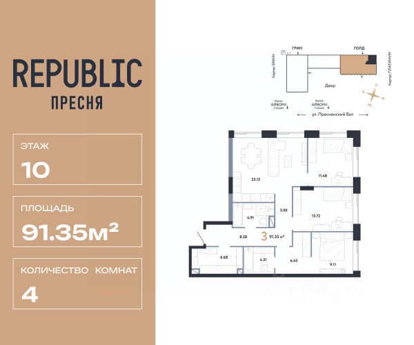 Рассрочка 0% с первым взносом от 20%, ипотека с субсидией или наличные. Подберём способ оплаты индивидуально. Продается 4комнатная квартира на 11 этаже от застройщика Страна Девелопмент. Площадь квартиры 118.82 кв. м. Дизайн-квартал "Republic" — новый проект премиум-класса в Москве от федерального застройщика "Страна Девелопмент". ЦАО, Пресня, 7 мин. от метро "Белорусская". 10 жилых башен и 4 восстановленных здания локомотивного депо образуют уникальное пространство. "Republic" — место, где вы ощутите гармонию истории и современности. За 12 мин. вы сможете дойти до Московского зоопарка, за 10 мин. на авто доехать до Патриарших прудов и Белого дома. Преимущества • Благоустройство. SPA-комплекс с бассейном и термами, гастрономический, учебный и шопинг-центры, приватный бульвар и яркие арт-пространства — для жителей предусмотрены все элементы премиального комфорта. • Панорама на центр. Наслаждайтесь видами ЦАО каждый день: панорама на историческую Пресню и башни Москва-Сити — из своей квартиры или с приватной террасы на крыше. • Концептуальное лобби в каждой башне. С общей террасой на кровле, с библиотекой, коворкингом и фитнес-рум. Стойка консьержа перетекающая в бар и др. • Современные форматы квартир. Свободные планировки, с террасой или балконом, с возможностью установки камина, от 1-комнатных до пентхаусов. • Отделка Квартиры сдаются без отделки или в формате White box. При White box уже выполнены все шумные и грязные работы: произведена разводка электричества с подрозетниками, установлены откосы из гипсокартона, устроена стяжка пола с шумоизоляцией и др. Способы покупки Сотрудники "Страна Девелопмент" будут сопровождать вас на каждом этапе сделки, помогут получить одобрение по ипотеке или снизить ежемесячный платеж. - ипотека (стандартная/с субсидией/траншевая) - рассрочка (с ПВ от 20%) - с использованием материнского капитала - оплата наличными