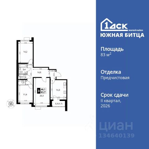 Продаётся 3-к квартира номер 701 общей площадью 78.3 кв.м. на 16-м этаже 23 этажного здания. Отделка Whitebox. Цена с учётом скидки.