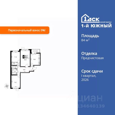 Продаётся 3-к квартира номер 198 общей площадью 76.8 кв.м. на 6-м этаже 24 этажного дома. Чистовая отделка. Дом сдан.