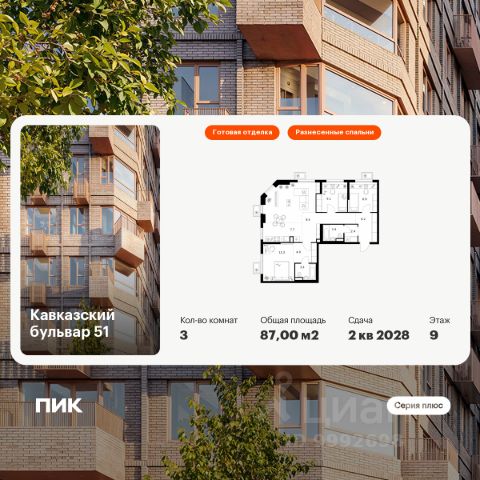 Продаётся 3-комн. квартира площадью 83,2 кв.м на 3 этаже 39 этажного дома (Корпус 1.3, Секция 4) проекта ПИК Москворечье. Светлый просторный подъезд на уровне земли, функциональная планировка, большие окна, c отделкой. Архитектурный проект разработан российским бюро Saga. Он представляет собой живую архитектурную среду, вдохновленную атмосферой исторических центров и разнообразием стилей. При этом каждый элемент разработан с вниманием к деталям и функциональности. Первая очередь, состоящая из четырех корпусов (1.1 - 1.4), запланирована к сдаче уже в 2027 году. Её общая площадь составит 103,3 тыс. м². Рядом с ней также появятся социальные объекты: образовательный центр, дошкольного и школьного образования на 3000 мест, включающий школу на 2500 мест, детские сады на 500 мест. Также на территории жилого квартала откроются два уютных детских сада, каждый на 350 мест и школа на 1350 мест. Кроме того, в "Москворечье" будет построена поликлиника, которую ежедневно смогут посещать до 450 пациентов. Внутри будет установлено современное оборудование для диагностики и профилактики. Также рядом будут созданы общественные пространства, технопарк, который обеспечит район новыми рабочими местами, досуговый центр, спортивные объекты и торговый центр. Все квартиры сдаются с готовой отделкой - заселиться можно сразу после получения ключей. В квартирах будет натяжной потолок, качественный ламинат, обои под покраску с лаконичной фактурой, межкомнатные и входные двери с дополнительной шумоизоляцией. Лобби выполнены в стиле современного минимализма. В отделке использованы долговечные материалы с выразительной фактурой: кирпич сочетается с мраморным бесшовным полом из наливного материала терраццо, гладкой плиткой и стеклом. Для автовладельцев будет доступен подземный паркинг. Особое внимание уделяется зоне первых этажей, где будет сформирована насыщенная городская среда. Здесь появятся общественные пространства, пешеходные галереи, коммерческие помещения и другие полезные сервисы для жителей. Точкой притяжения станет пешеходный бульвар, где будут расположены игровые площадки для детей разных возрастов и спортивные зоны. Квартал отличается хорошей транспортной доступностью. Ближайшие станции метро у жилого квартала "Москворечья" - "Каширская", "Кантемировская" и БКЛ "Варшавская", 1 минута на авто до ЮВХ, 15 минут до ТТК и МКАД. В 15 минутах от проекта парк культуры и отдыха "Долина реки Чертановка" и парк "Коломенское". До музея Царицыно, где регулярно проходят выставки и концерты - 20 минут на автомобиле. Артикул 984857 (Застройщик ООО "СЗ ИМПУЛЬС") Купить 3-комнатную квартиру в новостройке с отделкой рядом с метро Кантемировская.