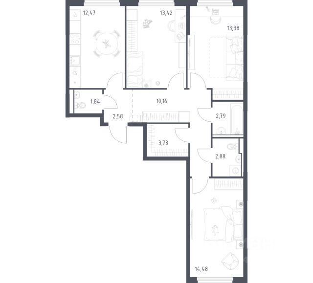Квартира с кухней-гостиной и тремя спальнями в Квартале Герцена. Особенности планировки: балкон, второй санузел, гардеробная, окна на две стороны, постирочная, предчистовая отделка. Квартиру можно купить онлайн. В квартире выполнена отделка "под чистовую". Установлены окна с двойным стеклопакетом, радиаторы с терморегуляторами. На полу цементно-песчаная стяжка. В квартиры заведены кабели для интернета и ТВ. Входная сейф-дверь не требует замены. Организован поквартирный учёт энергоресурсов (водоснабжение, отопление, электричество). Квартал "Герцена" расположен в Бирюлёве Восточном — районе на юге Москвы. Дорога до ТТК займет всего полчаса на автомобиле, до станции метро и ж/д станции "Царицыно" — 13 минут, а до автовокзала "Южные ворота" — 20 минут. До автобусных остановок можно дойти пешком. В 2027-2028 году откроется новая станция метро "Лебедянская", дорога до неё займет всего 18 минут. Общая площадь "Квартала Герцена" составляет 27,3 га. Дома состоят из разноуровневых секций высотой от 6 до 55 этажей с видовыми террасами и балконами. На территории квартала будет построена поликлиника, детский сад на 350 мест и воспитательно-образовательный комплекс на 1075 мест, а также рестораны, клиники, магазины и салоны красоты. Объявление от застройщика. Ипотека, материнский капитал. Обмен — один из способов покупки. Обмен подойдёт, если вы хотите быстро поменять старую квартиру на новую. Получить ипотеку или рассрочку, а также обменять квартиру можно онлайн. Запишитесь на онлайн-презентацию по телефону или на сайте. квартиры в нашей базе: ГРЦ01.2-Ж4.5.14. Продается 3-комнатная квартира в новостройке с отделкой рядом с метро Красногвардейская.