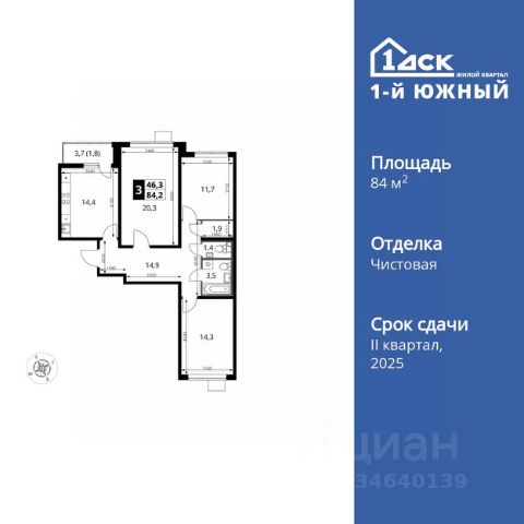 • Удобная планировка: Просторные и светлые комнаты (14,13 м², 11,38 м² и 9,65 м²), которые идеально подходят для семейной жизни.