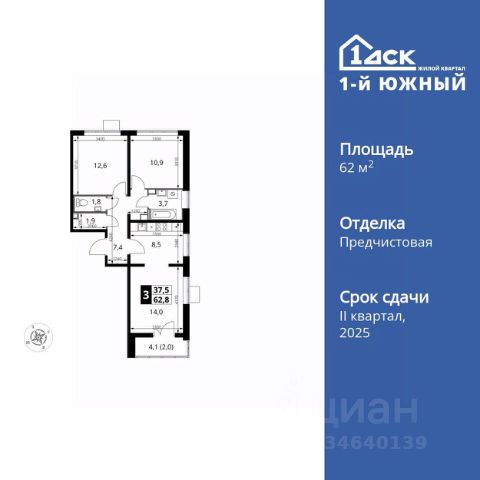 Предлагаем вашему вниманию уютную 3-комнатную квартиру в новом жилом комплексе, готовую к переуступке прав. Квартира расположена на 16 этаже 18-этажного дома и имеет общую площадь 61,48 квадратных метра.