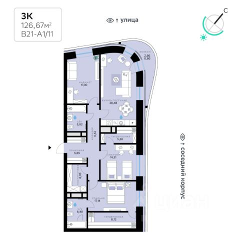 В продаже — трехкомнатная квартира с чистовой отделкой, общей площадью 111,48 кв. м. Квартира расположена на седьмом этаже тринадцатиэтажной секции дома класса Адвансд в новом районе СберСити, который строит Сбер. Дом находится на первой береговой линии Москвы-реки. Дом возводится по технологии монолитного строительства. Отделка фасадов выполнена из природного камня, глазурованной плитки и алюминия. В квартире проведены работы по улучшению шумоизоляции, установлены двухкамерные стеклопакеты с низкоэмиссионными стёклами, минимизирующими теплопотери. В санузлах — тёплый пол. В доме расположены: • уютное лобби, • лапомойка, • общественная терраса, • коворкинг для жителей, • собственная спортивная студия, • колясочная и велосипедная комната на первом этаже, • детская игровая комната, • подземный паркинг. СберСити — это новый жилой и деловой район на западе Москвы, в одном из самых экологически чистых и престижных мест столицы. Это первая в России и крупнейшая в мире инновационная городская среда, созданная по международным стандартам зелёного проектирования. Здесь внедряются решения в области энергоснабжения, вакуумного мусороудаления, тестирования зелёных технологий, а в дальнейшем — системы искусственного интеллекта для управления домами и городской инфраструктурой. Строительство проекта началось в 2021 году, заселение первых корпусов — с лета 2024-го. Общая площадь территории — 461 га, из них более 2,5 млн кв. м жилья и около 833 тыс. кв. м офисных пространств. Будет построено 7 школ, 13 детских садов и 2 поликлиники. В СберСити будут жить 65 тыс. человек и работать 70 тыс. Развитием территории занимается АО "Рублёво-Архангельское", входящее в группу Сбер. СберСити — место, где хочется жить, работать и растить детей. Переезжайте в СберСити!