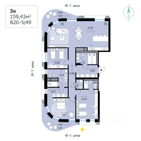В продаже — трехкомнатная квартира с чистовой отделкой, общей площадью 151,97 кв. м. Квартира расположена на третьем этаже шестиэтажной секции корпуса класса Суперб в новом районе СберСити, который строит Сбер. Дом находится на первой береговой линии Москвы-реки. Сочетание элегантной архитектуры от ведущего итальянского бюро и передовых технологий на всех уровнях — от квартиры до инфраструктуры района. Дом возводится по технологии монолитного строительства. Отделка фасадов выполнена из природного камня. Проведены работы по улучшению шумоизоляции, установлены двухкамерные стеклопакеты с низкоэмиссионными стёклами, минимизирующими теплопотери. В санузлах установлен тёплый пол. В квартирах предустановлена система "умный дом" — комплекс решений, объединяющий квартиру, дом и прилегающую территорию. Жильцы могут регулировать климат и освещение голосом или со смартфона, выбирая комфортные сценарии для жизни. В доме расположены: • круглосуточный консьерж-сервис, • общественная гостиная, • уютное лобби, • общественная терраса, • коворкинг для жителей, • собственная спортивная студия, • колясочная и велосипедная комната на первом этаже, • детская игровая комната, • лапомойка, • подземный паркинг. СберСити — это новый жилой и деловой район на западе Москвы, в одном из самых экологически чистых и престижных мест столицы. Это первая в России и крупнейшая в мире инновационная городская среда, созданная по международным стандартам зелёного проектирования. Здесь внедряются решения в области энергоснабжения, вакуумного мусороудаления, тестирования зелёных технологий, а в дальнейшем — системы искусственного интеллекта для управления домами и городской инфраструктурой. Строительство проекта началось в 2021 году, заселение первых корпусов — с лета 2024-го. Общая площадь территории — 461 га, из них более 2,5 млн кв. м жилья и около 833 тыс. кв. м офисных пространств. Будет построено 7 школ, 13 детских садов и 2 поликлиники. В СберСити будут жить 65 тыс. человек и работать 70 тыс. Развитием территории занимается АО "Рублёво-Архангельское", входящее в группу Сбер. СберСити — место, где хочется жить, работать и растить детей. Переезжайте в СберСити!