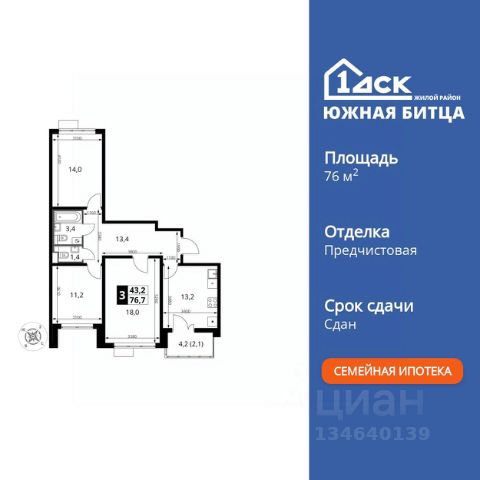 Прямая продажа от застройщика! Семейный жилой район класса Комфорт Плюс Продаётся 3-к квартира номер 752 общей площадью 63.6 кв.м. на 17-м этаже 22 этажного здания. Отделка Whitebox. Особенности квартиры: - Распашная планировка - отличное сочетание удобства и свободы. - Окно в ванной - натуральное освещение для уюта и комфорта. - Увеличенное количество окон - дополнительное освещение и свежий воздух. - Гостевой санузел - комфорт и удобство для ваших гостей. - Раздельный санузел - больше удобства для всех членов семьи. - Гардеробная - удобство для хранения и организации вещей. - Лоджия - уютное место для отдыха и тишины. Квартира с предчистовой отделкой (White box). Вам не придется заниматься черновыми и трудоёмкими работы, а чистовую отделку и дизайн - сделайте на свой вкус. Информация о комплексе: Сочетание свободного перемещения по внутреннней территории без машин и ощущения абсолютной безопасности благодаря надежным ограждениям - вот что отличает ЖК Южная Битца. На территории комплекса созданы все условия как для активного образа жизни, так и для спокойного времяпрепровождения. Свободно перемещайтесь по внутренней территории в безбарьерной среде! Продуманное зонирование во дворах позволяет отделить тихие зоны для родителей со спящими младенцами и тех, кто хочет почитать на свежем воздухе, от шумных игровых зон. Игровые зоны учитывают возраст детей. Площадки для детей старшего возраста вынесены за пределы дворов. Ощущение уютного дома должно начинаться с подъезда. Мы постарались предусмотреть все нюансы, чтобы наши лифты отвечали самым строгим современным требованиям. А наличие кладовых позволит вам поддерживать идеальный порядок и уют в вашей квартире! Транспортная доступность: В 3 км от МКАД в нескольких минутах езды до трех станций метро: Аннино, Бульвар Дмитрия Донского, улица Старокочаловская и станции МЦД2 - жд Бутово. Внутренняя инфраструктура: Для жителей жилого района "Южная Битца" доступна развитая инфраструктура близлежащих московских районов Чертаново, Южное, Бирюлёво Западное, Северное Бутово и Южное Бутово. Множество образовательных учреждений, объекты здравоохранения, торговые и развлекательные центры, кинотеатры, кафе, рестораны, парки.