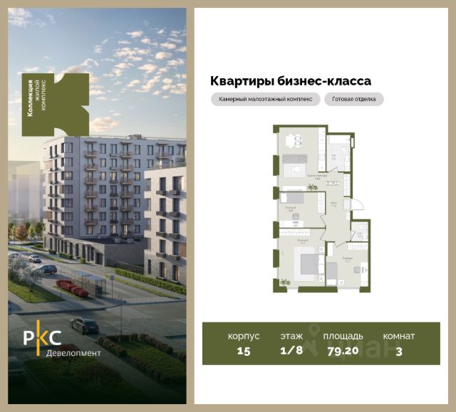 Агентам не звонить. Продается уютная 3-комнатная квартира на 1 этаже от застройщика. Общая площадь 79,2 кв.м. На выбор представлены 3 вида дизайнерской отделки с использованием качественных материалов. Высота потолков 3 м. Большая просторная кухня. "Коллекция" это камерный среднеэтажный жилой комплекс бизнес-класса в престижном экологически чистом районе Подмосковья. Прекрасная экология и живописная природа, отсутствие промышленных зон и вредных предприятий. В проекте планируется строительство 5 корпусов средней этажностью (4-8 этажей) с террасами и угловыми окнами, строительство собственной инфраструктуры: три детских сада, школа, поликлиника, физкультурно-оздоровительный комплекс. Жителям будут доступны машино-места в подземном паркинге, кладовые помещения. Ввод в эксплуатацию 3 кв. 2028г. Развитая инфраструктура: Детские площадки будут выполнены в природных материалах, игровые комплексы с бизибордами, развивающие игровые установки для игр с песком. Спортивная инфраструктура: столы для настольного тенниса, тренажеры, гимнастический комплекс. В пешей доступности находятся парк Дружба, загородный клуб "Moscow Country Club", парк имени Карбышева. Это располагает к приятным прогулкам и спокойному отдыху жителей комплекса. Транспортная доступность: 13 км от МКАД, 14 минут до МЦД-2 Нахабино, 26 минут до метро "Митино", 30 минут до метро "Пятницкое шоссе". В ближайшей перспективе - расширение местной дорожной сети и запуск новых маршрутов до ж/д станций и станций метро.