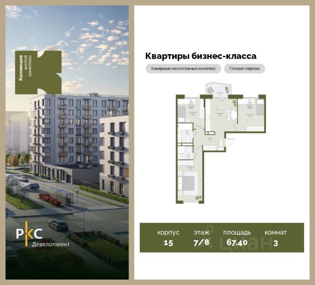 Агентам не звонить. Продается уютная 3-комнатная квартира на 7 этаже от застройщика. Общая площадь 67,4 кв.м. На выбор представлены 3 вида дизайнерской отделки с использованием качественных материалов. Высота потолков 3 м. Большая просторная кухня. "Коллекция" это камерный среднеэтажный жилой комплекс бизнес-класса в престижном экологически чистом районе Подмосковья. Прекрасная экология и живописная природа, отсутствие промышленных зон и вредных предприятий. В проекте планируется строительство 5 корпусов средней этажностью (4-8 этажей) с террасами и угловыми окнами, строительство собственной инфраструктуры: три детских сада, школа, поликлиника, физкультурно-оздоровительный комплекс. Жителям будут доступны машино-места в подземном паркинге, кладовые помещения. Ввод в эксплуатацию 3 кв. 2028г. Развитая инфраструктура: Детские площадки будут выполнены в природных материалах, игровые комплексы с бизибордами, развивающие игровые установки для игр с песком. Спортивная инфраструктура: столы для настольного тенниса, тренажеры, гимнастический комплекс. В пешей доступности находятся парк Дружба, загородный клуб "Moscow Country Club", парк имени Карбышева. Это располагает к приятным прогулкам и спокойному отдыху жителей комплекса. Транспортная доступность: 13 км от МКАД, 14 минут до МЦД-2 Нахабино, 26 минут до метро "Митино", 30 минут до метро "Пятницкое шоссе". В ближайшей перспективе - расширение местной дорожной сети и запуск новых маршрутов до ж/д станций и станций метро.