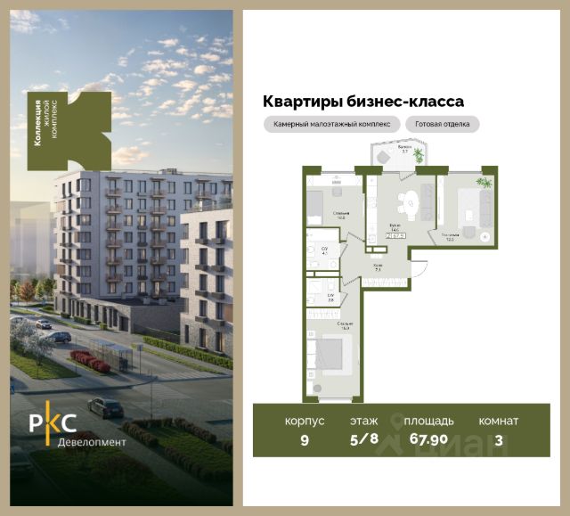 Агентам не звонить. Продается просторная 3-комнатная квартира на 5 этаже с готовой отделкой от застройщика. мастер-спальня, 2 комнаты, 2 санузла, балкон, вид на парковку/парк/двор. Общая площадь 67,9 кв.м. На выбор представлены 3 вида дизайнерской отделки с использованием качественных материалов. Высота потолков 3 м. Площадь кухни 14.6 м2. "Коллекция" это камерный среднеэтажный жилой комплекс бизнес-класса в престижном экологически чистом районе Подмосковья. Прекрасная экология и живописная природа, отсутствие промышленных зон и вредных предприятий. В проекте планируется строительство 5 корпусов средней этажностью (4-8 этажей) с террасами и угловыми окнами, строительство собственной инфраструктуры: три детских сада, школа, поликлиника, физкультурно-оздоровительный комплекс. Жителям будут доступны машино-места в подземном паркинге, кладовые помещения. Ввод в эксплуатацию 3 кв. 2028г. Развитая инфраструктура: Детские площадки будут выполнены в природных материалах, игровые комплексы с бизибордами, развивающие игровые установки для игр с песком. Спортивная инфраструктура: столы для настольного тенниса, тренажеры, гимнастический комплекс. В пешей доступности находятся парк Дружба, загородный клуб "Moscow Country Club", парк имени Карбышева. Это располагает к приятным прогулкам и спокойному отдыху жителей комплекса. Транспортная доступность: 13 км от МКАД, 14 минут до МЦД-2 Нахабино, 26 минут до метро "Митино", 30 минут до метро "Пятницкое шоссе". В ближайшей перспективе - расширение местной дорожной сети и запуск новых маршрутов до ж/д станций и станций метро.
