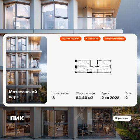 О квартире Продаётся 3-комнатная квартира общей площадью 71.3 кв.м. с отделкой white box. Квартира расположена на 9 этаже корпуса 5.1 в жилом комплексе бизнес-класса "Среда на Лобачевского" в пешей доступности от метро "Аминьевская". О жилом комплексе "Среда на Лобачевского" полностью соответствует критериям современного жилого пространства. Взяв за основу рациональный подход, мы гармонично соединили дизайн, актуальные тренды и функциональность. Продуманный современный экстерьер и функциональные планировки внутри, приватные пространства и разнообразные досуговые зоны для каждого члена семьи — все это "Среда на Лобачевского". Инфраструктура Район отлично развит и наполнен жизнью, здесь уже есть вся необходимая инфраструктура — детские сады, школы, медучреждения, торговые центры, благоустроены парки для прогулок и отдыха, удобен и легкодоступен городской транспорт. Рядом расположены учебные корпуса крупных университетов — МГУ, МГИМО и РАНХиГС. Школы и детские сады в районе занимают высокие позиции в городских рейтингах, поэтому вам не придется беспокоиться о качестве образования детей. Как и об отдыхе: поблизости расположены живописные пруды, реки и парки. Это Парк Олимпийской деревни, Парк имени 50-летия Октября, Мещерский парк и Очаковские пруды. Теперь поставить галочки в еженедельном чек-листе "спорт-прогулки-встречи с друзьями" можно, не покидая любимый район. Особенности Особое внимание в проекте уделяется созданию функциональных пространств не только внутри дома, но и за его пределами. В ландшафтном парке "Среды на Лобачевского" расположены крытые зоны для спокойного времяпровождения, места для активного отдыха и спорта, коворкинг, соседский комьюнити-центр, водные объекты. —Ландшафтный парк во дворе. —Водный сад с зонами отдыха. —Зоны коворкинга. —Дизайнерские гранд-лобби. —Бесключевой доступ. —Подземный паркинг.