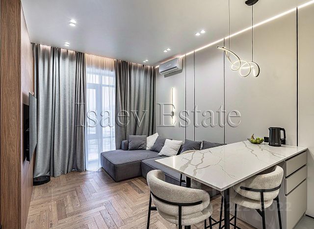 КВАРТИРА: Стильная современная светлая двухкомнатная площадью 47 м². С дизайнерским ремонтом, сделанным по индивидуальному заказу из высокотехнологичных материалов. Просторная кухня-гостиная 26 м² с шикарными видами из панорамных окон на живописную природу и город, оборудованная кухонным гарнитуром и всей встроенной фирменной техникой от известных производителей: индукционной плитой, духовым шкафом, посудомоечной машиной, холодильником, установлена фильтрация питьевой воды. Просторная спальня с двухспальной кроватью и всем необходимым для комфортного отдыха, а также стильной гардеробной. Совмещенный санузел. По всей квартире многоуровневая светодиодная подсветка. Установлена система кондиционирования для регулирования температуры в любое время года. Квартира оснащена всем необходимым для жизни, заезжай и сразу наслаждайся жизнью.