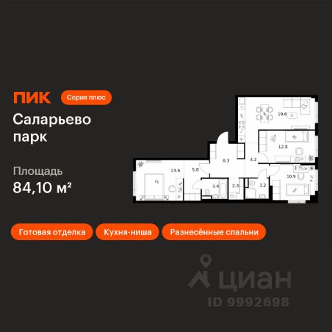 Продаётся 3-комн. квартира площадью 65,6 кв.м на 15 этаже 24 этажного дома (Корпус 82.4, Секция 4) проекта ПИК Саларьево парк. Светлый просторный подъезд на уровне земли, функциональная планировка, большие окна, предчистовая отделка. Жилой район "Саларьево парк" расположен в Новой Москве, в четырёх километрах от МКАД по Киевскому шоссе. Две станции метро: "Саларьево" и "Филатов луг", — находятся в пешей доступности от проекта. Дойти до них можно за 510 минут. В квартале уже создана качественная среда, где есть абсолютно всё для полноценной жизни, работы и отдыха. Благодаря удобному расположению проекта всё важное будет рядом: детские сады, школы, кафе и рестораны, шопинг в торговых центрах, фитнес и даже аэропорт. Все корпуса в квартале гармонично сочетаются, образуя единую городскую среду. Между собой их объединяет невысокая этажность и натуральная цветовая гамма. Здесь приятно гулять и проводить время на улице всей семьёй. В "Саларьево парке" создана уникальная образовательная среда, включающая в себя шесть школ, рассчитанных на 6 250 учеников. Две из них уже открыты, их посещает 2 300 детей. Также на территории "Саларьево парка" находится 12 детских садов, один из которых с бассейном. Сейчас уже открыты 7 садов. В "Саларьево парке" открыта уникальная игровая площадка — PlayHub "Оригами". Здесь есть ручей, горка-труба и рельефные холмы. Взрослые смогут отдохнуть в уютном кафе, пока дети играют. Также на территории проекта есть SportHub — большая спортивная зона, разделённая по интересам и возрастам. Здесь можно заниматься разными видами спорта: футболом, баскетболом, волейболом и стритболом. Зимой центральную часть площадки превращают в каток. Во дворах-парках жилого квартала есть места для отдыха, детские и спортивные площадки. На первых этажах домов расположены магазины, кафе и полезные сервисы. Также вблизи проекта есть несколько масштабных торговых центров. До ТЦ "Саларис" пять минут пешком, до "Рио", Metro Cash & Carry и "Леруа Мерлен" — пять минут на автомобиле. Артикул 1032697 (Застройщик ООО "Специализированный Застройщик "Тирон")