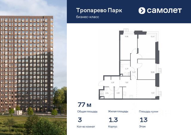 Продаётся 3-комн. квартира площадью 67,1 кв.м на 2 этаже 14 этажного дома (Корпус 74.3, Секция 3) проекта ПИК Саларьево парк. Светлый просторный подъезд на уровне земли, функциональная планировка, большие окна, предчистовая отделка. Жилой район "Саларьево парк" расположен в Новой Москве, в четырёх километрах от МКАД по Киевскому шоссе. Две станции метро: "Саларьево" и "Филатов луг", — находятся в пешей доступности от проекта. Дойти до них можно за 510 минут. В квартале уже создана качественная среда, где есть абсолютно всё для полноценной жизни, работы и отдыха. Благодаря удобному расположению проекта всё важное будет рядом: детские сады, школы, кафе и рестораны, шопинг в торговых центрах, фитнес и даже аэропорт. Все корпуса в квартале гармонично сочетаются, образуя единую городскую среду. Между собой их объединяет невысокая этажность и натуральная цветовая гамма. Здесь приятно гулять и проводить время на улице всей семьёй. В "Саларьево парке" создана уникальная образовательная среда, включающая в себя шесть школ, рассчитанных на 6 250 учеников. Две из них уже открыты, их посещает 2 300 детей. Также на территории "Саларьево парка" находится 12 детских садов, один из которых с бассейном. Сейчас уже открыты 7 садов. В "Саларьево парке" открыта уникальная игровая площадка — PlayHub "Оригами". Здесь есть ручей, горка-труба и рельефные холмы. Взрослые смогут отдохнуть в уютном кафе, пока дети играют. Также на территории проекта есть SportHub — большая спортивная зона, разделённая по интересам и возрастам. Здесь можно заниматься разными видами спорта: футболом, баскетболом, волейболом и стритболом. Зимой центральную часть площадки превращают в каток. Во дворах-парках жилого квартала есть места для отдыха, детские и спортивные площадки. На первых этажах домов расположены магазины, кафе и полезные сервисы. Также вблизи проекта есть несколько масштабных торговых центров. До ТЦ "Саларис" пять минут пешком, до "Рио", Metro Cash & Carry и "Леруа Мерлен" — пять минут на автомобиле. Артикул 1006471 (Застройщик ООО "Специализированный Застройщик "Тирон") 3-комнатная квартира в новостройке с отделкой рядом с метро Саларьево.