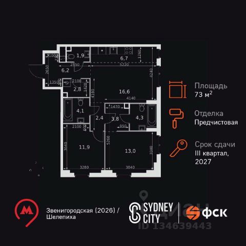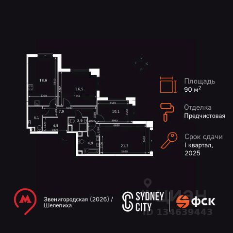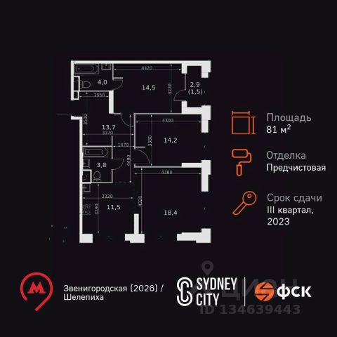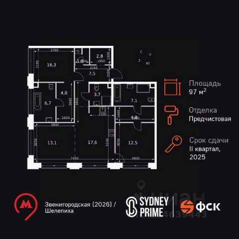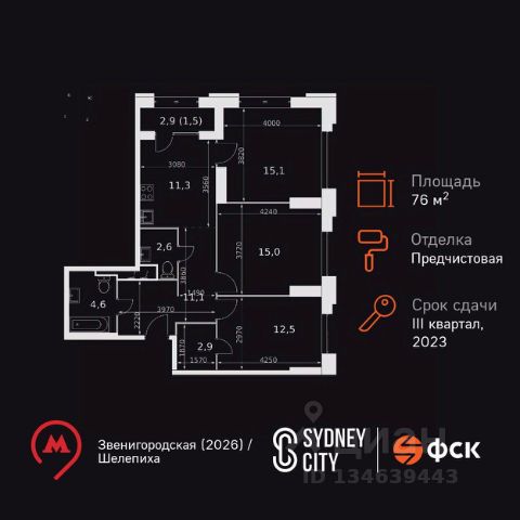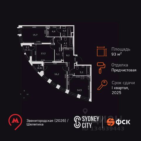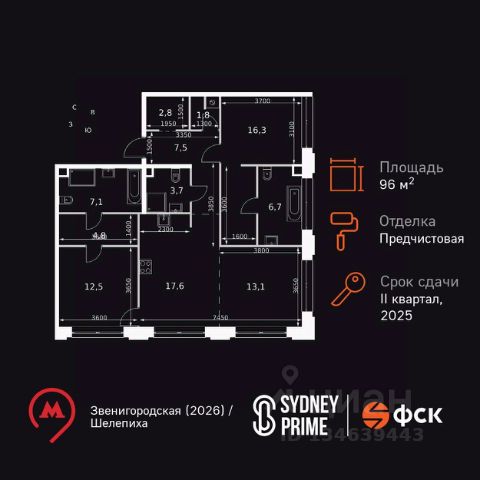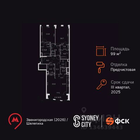Продаётся 3-комнатная квартира в ЖК HEADLINER, общей площадью 95,8 кв. м, на 2 этаже. Высота потолков 3 м. Это просторная, светлая квартира подойдет для большой семьи, в ней три полноценные спальни и кухня-гостиная. В квартире предусмотрено 2 санузла и 3 гардеробные комнаты. Окна в квартире выходят на разные стороны, также в квартире есть лоджия. В квартире выполнена предчистовая отделка White box. Дом сдан. Квартал HEADLINER находится в Пресненском районе ЦАО, рядом с м. "Шелепиха". В непосредственной близости Москва-Сити. Рядом находятся парк Причальный и Шелепихинская набережная. За 5-10 минут на автомобиле можно добраться до парков Фили, Красногвардейские пруды, Красная Пресня и парка Победы. В пешей досягаемости - ТРЦ "Афимолл Сити", ТРЦ "Филион", ТРЦ "Европейский", World Class, а также вся инфраструктура ММДЦ "Москва-Сити". На территории ЖК расположен филиал частной аккредитованной школы полного дня "Путь к успеху". В непосредственной близости расположены лучшие школы ЦАО: ГБОУ "Романовская школа", физико-математическая школа 56 им. академика В.А. Легасова, школа с углубленным изучением английского языка 1232 "На Кутузовском". Особенности ЖК: - Потрясающие видовые характеристики открываются на "Москва-Сити", Москву-реку и панораму центра столицы; - 8 минут пути до набережной Тараса Шевченко с живописными видами на Headliner и Деловой центр; - Разная высота корпусов: от 5 до 51 этажа с уникальным внешним видом; - Потолки от 3 м; - Доступны варианты как с отделкой white box, так и без нее; - 80% квартир имеют ширкоформатные окна; - Вместительный двухуровневый подземный паркинг с кладовыми; - Лаунж-зоны с каминами и стильной мебелью; - Колясочные и гостевые уборные; - Концепция "дворы без автомобилей"; - Консьерж-зоны в подъездах; - Видеонаблюдение, круглосуточная охрана.