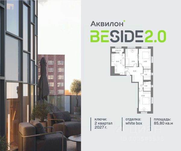 Продажа от застройщика. Продается просторная 3-комнатная квартира на 4 этаже современного жилого комплекса Beside 2.0. Вид из окон: во двор и на улицу. Срок сдачи: 2 кв. 2027 г. Квартира с лоджией. Отделка WhiteBox: - Вам не придется заниматься черновыми работами. - Возможность реализовать любой дизайн-проект. Расположение: В Beside 2.0 все необходимое - в шаговой доступности, не нужно тратить много времени на дорогу до работы, школы и поликлиники, походы в магазины и кинотеатры. Квартал расположен на пересечении ключевых транспортных магистралей Москвы, что позволяет быстро и легко добраться до любой нужной локации. Выбирайте наиболее подходящее занятие или попробуйте все! - Спортивные центры - Ретейл на первых этажах - Событийная площадь с амфитеатром - Дворовые площадки для активностей Транспортная доступность: - 5 минут на машине до ТТК - 7 минут на машине до Садового кольца - 7 минут пешком до станции "Нижегородская Внутренняя инфраструктура Beside 2.0: - Своя школа на 825 учеников - Просторное и светлое гранд-лобби - Коворкинг на открытом воздухе - Детский клуб Akvilon Kids - Подземный паркинг - Колясочные и велосипедные - Сити-боксы для хранения - Профессиональная управляющая компания Преимущества: - Технология энергоэффективности Termo-S, снижающая теплопотерю домов и позволяющую экономить на электроснабжении - Soundstop - технология дополнительной шумоизоляции на 39 дБ в квартирах с WhiteBox и чистовой отделкой - Система умного дома inHome 3.0 позволит контролировать коммунальные расходы, оплачивать счета и пользоваться услугами, не выходя из умного дома - Vent-In - система циркуляции воздуха в каждой комнате