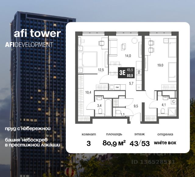 3-комнатная квартира площадью 84,2 кв.м., расположенная на 16 этаже 53-этажного небоскреба бизнес-класса это именно то, что вы ищете! AFI Tower — это не просто жилой комплекс. Это место, где каждая деталь заботливо продумана, чтобы сделать вашу жизнь удивительной и комфортной. Транспортная доступность - AFI Tower расположен близко к проезду Серебрякова, что обеспечивает быстрый доступ к Третьему Транспортному Кольцу и МКАД. За 15 минут можно легко добраться до ключевых транспортных магистралей в зависимости от дорожной ситуации. - В пешей доступности находятся станции метро "Свиблово" и "Ботанический сад" — это дает возможность жителям легко перемещаться по городу. Рядом также расположена станция Московского центрального кольца у "Ботанического сада". Архитектура: - Башня AFI Tower привлекает своим смелым архитектурным решением. Фасад, выполненный в виде мягкой волны, делает здание узнаваемым и уникальным в контексте стандартных высоток. С высотой в 182,4 метра, она становится неповторимой доминантой в Свиблово. Внутренняя инфраструктура: - Лобби AFI Tower выделяется современным дизайном, высокими потолками от 2,9 м до 3,3 м и использованием качественных материалов. Это визитная карточка здания, предоставляющая посетителям первое впечатление. Внутреннее пространство продумано для комфорта и функциональности. Характеристики квартир: - Здесь каждая квартира — уникальная история. От 19 до 116 м² площади, три варианта отделки — светлый, темный или white box, чтобы ваш дом отражал ваш вкус и стиль. Принимайте решение не просто о покупке жилья, а о создании своего собственного уютного уголка. Удобства внутри AFI Tower: - В самом доме целый мир удобств и развлечений. Ресторан, библиотека, прачечная и коворкинг — каждое место наполнено энергией и возможностями. Вечерами, уютная кинозона с кинопроектором и настольными играми создает атмосферу веселья и отдыха. Экология и окружение: - Жить в AFI Tower — значит быть частью уникального окружения. Близость к пруду и зеленому скверу придает местности неописуемое очарование. Вид из окон на Москву, ВДНХ и парки создают вдохновляющий пейзаж. А безопасность и удобство парковки добавляют приятные моменты к вашему образу жизни. 3-комнатная квартира в новостройке с отделкой рядом с метро Свиблово.