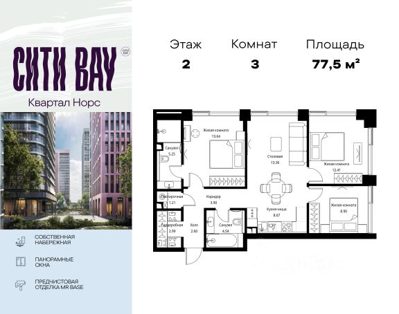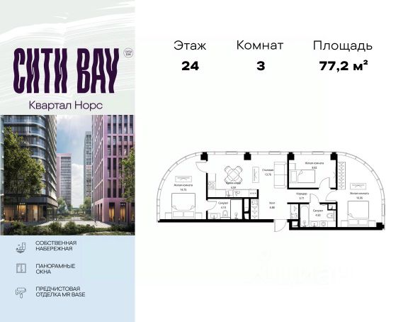 Продаётся 3-комнатная квартира 74 м². В жилом районе Алиа на 26-м этаже 28-этажного дома. Жилой район Алиа — это дома бизнес-класса у слияния Москвы-реки и Сходни. Алиа находится в Покровском-Стрешневе, экологически чистом районе на престижном северо-западе столицы. Район возводится на бывшей территории Тушинского аэрополя, где никогда не было промышленного производства. Алиа — это район разностороннего развития, спроектированный по принципу WORK.LIVE.PLAY.LEARN. Это "15-минутный город", где вся необходимая для комфортной жизни инфраструктура — на расстоянии приятной прогулки. У района удобное расположение: отсюда меньше 10 минут пешком до станций метро "Спартак" и "Тушинская" и всего полчаса на автомобиле до центра города или аэропорта Шереметьево. Архитектурную концепцию Алиа разработало бюро SOM (Skidmore, Owings & Merrill), авторы знаменитой "Бурдж-Халифа". В Алиа больше 140 планировочных решений, среди которых — редкие для Москвы форматы: квартиры с окном в ванной, пентхаус, сити-юниты и таунхаусы. Почти половина территории района отдана под благоустройство. В Алиа три парка: Линейный парк с кафе и магазинами, Центральный парк с амфитеатром, сухим фонтаном и большим плейхабом для детей всех возрастов и Прибрежный парк на собственной набережной, одной из самых длинных в Москве. В каждом урбан-блоке — закрытый внутренний двор с гипоаллергенными растениями и детской площадкой. В лобби каждого жилого корпуса в Алиа оборудована зона ожидания, колясочная, гостевой санузел и лапомойка для домашних животных. За стойкой ресепшена резидентов и их гостей встречает консьерж. Центральное лобби урбан-блока — это стильное общественное пространство с коворкингом, лаундж-зоной и кофе-пойнтом. Это "вторая гостиная" жителей урбан-блока и одно из мест, где формируется комьюнити Алиа. Два ключевых объекта инфраструктуры в Алиа — это спорткомплекс "Чкалов Арена", где представлены 25 видов спорта, и самый большой в стране бизнес-парк класса A, благодаря которому району обеспечено быстрое развитие. Купить 3-комнатную квартиру в новостройке с отделкой рядом с метро Тушинская.