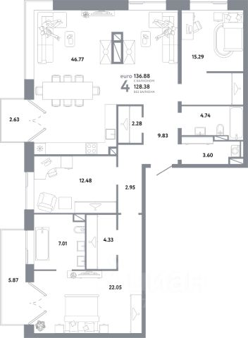 Продаётся 3-комнатная квартира в строящемся доме (РЕДС 2), срок сдачи: I-кв. 2026, общей площадью 136.88 кв.м., на 26 этаже.