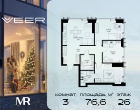 Прямая продажа от застройщика. Продаётся 3-комнатная квартира общей площадью 79.90 м² с предчистовой отделкой в ЖК VEER на 33-м этаже 59 этажного дома. Жилой комплекс бизнес-класса VEER от компании MR — это футуристичный мультиквартал, расположенный в престижной локации на западе Москвы. Благодаря переменной высоте башен — двух 22-этажных, 46-этажной и двух 59-этажных — возникает динамичность в силуэте комплекса, а его яркий образ вносит разноплановость в архитектурный пейзаж района. Расположение и транспортная доступность: • VEER удобно расположен в непосредственной близости от Кутузовского проспекта, обеспечивая быстрый доступ к центральным районам Москвы • Комплекс находится непосредственно напротив самого большого природного заказника в Москве - парка "Долина реки Сетунь", а за семь минут можно доехать до памятника садово-паркового искусства, Троекуровского леса. • Всего в 15 минутах - центр города, самая престижная бизнес-школа управления России "Сколково", дом творчества "Переделкино". • 18 минут пешком до м. "Давыдково" • Открытие новых станций метро в шаговой доступности в будущем Инфраструктура: Разнообразить свой день резиденты VEER смогут также проводя больше времени на свежем воздухе. Двор разделен на 4 зоны разных эмоций и действий, которые пересечены и соединены веерными прогулочными маршрутами: • Спортивная площадка устроена в глубине "Кленовой рощи" • В "Чайном домике" будет создан навес с утеплением для отдыха в любую погоду • Площадки для детей воплотятся в "Волшебный лес" с цветами, зеркалами и световым дизайном • "Центральная площадь" устроена у водного оазиса живописного пруда. Компания MR предлагает своим клиентам специальные условия приобретения квартир в рамках программ ипотечного кредитования от банков-партнеров. Продается 3-комнатная квартира в новостройке с отделкой в районе Можайский в Москве.