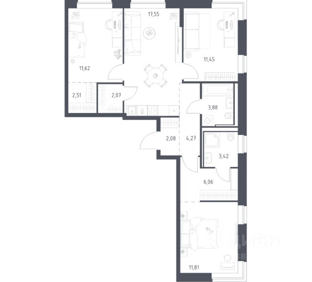 Продается трехкомнатная квартира с отделкой в 18 фазе города-парка "Переделкино Ближнее". Общая площадь квартиры - 79,2 кв. м, этаж 4 из 17. Срок сдачи - 2 квартал 2027 года. Тип дома - монолитный. ТОЛЬКО ДО 31 МАРТА выгодные условия на приобретение квартиры в ипотеку или рассрочку. Звоните - и мы подберем оптимальное предложение под ваш запрос! Корпус состоит из 12 секций c переменной этажностью 8-17 этажей. Город-парк "Переделкино Ближнее" расположен в 8 км от МКАД по Боровскому шоссе. ТРАНСПОРТНАЯ ДОСТУПНОСТЬ: - 10 минут пешком до МЦД-4 "Мичуринец" - 14 минут на машине до станции метро "Филатов Луг" Сокольнической линии - 15 минут пешком до станции метро "Рассказовка" Солнцевской линии - 30 минут до центра Москвы - Прямой выезд на дорогу Солнцево-Бутово-Варшавское шоссе, минуя жилую застройку всего ЖК РАЗВИТАЯ СОЦИАЛЬНАЯ ИНФРАСТРУКТУРА: - 7 детских садов, 3 школы - детская музыкальная школа имени Б.Л. Пастернака - поликлиника для взрослых ГБУЗ ГП 212 ДЗМ филиал 70 - пожарная часть 66. Аварийно-спасательный отряд 6 ГКУ - банки, продуктовые магазины, аптеки, фитнес центры, салоны красоты и пр БЛАГОУСТРОЙСТВО: - дворы без машин - игровые зоны и развивающие детские площадки - детские площадки разделены по возрастным группам - зоны для пассивного отдыха - зоны для занятий спорта ОСОБЕННОСТИ АРХИТЕКТУРЫ: - переменная этажность открывает видовые характеристики на реку Алешинка и на лесопарковую зону - увеличенное остекление в квартирах - высокие потолки от 3,03 м. - безбарьерные входные группы - колясочные в каждой входной группе - кладовые помещения расположены на -1 этаже каждой секции и на 2-17 жилых этажах в секции 11 - коммерческие помещения на 1 этаже в 11 и 12 секциях - в секциях 2-4, 6-7, 11-12 по 2 лифта: 1 пассажирский, 1 грузовой - в секциях 1, 5, 8-10: 1 грузовой лифт - мусоропроводы в домах не предусмотрены, запроектированы специальные зона для сбора мусора - на фасаде предусмотрены корзины для установки кондиционеров. - видеонаблюдение установленное в холлах первых этажей, у подъездов и прилегающей территории АВТОРСКИЙ ДИЗАЙН: Входные группы выполнены по авторскому дизайну, оснащены системой "тёплый пол". В каждой входной группе будет располагаться комфортабельная зона ожидания, почтовые ящики, колясочная, акцентные пуфы и столик. 3-комнатная квартира в новостройке с отделкой в поселении Внуковское в Москве.
