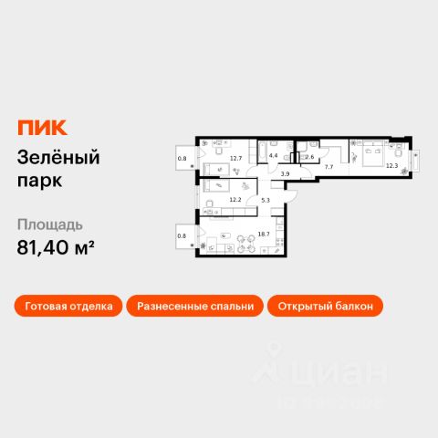 Продаётся 3-комн. квартира площадью 81,4 кв.м на 5 этаже 13 этажного дома (Корпус 5.3, Секция 2) проекта ПИК Зелёный парк. Светлый просторный подъезд на уровне земли, функциональная планировка, большие окна, c отделкой. Большой квартал с оригинальной архитектурой в обжитом районе Зеленограда. От него до станции МЦД-3 "Зеленоград-Крюково" — 20 минут пешком, до Кутузовского шоссе можно доехать на машине за 3 минуты, а до Пятницкого шоссе — за 5 минут. Характер "Зелёного парка" отражён в архитектуре. Квартал состоит из уютных разноэтажных блоков с оригинальными акцентами. Цветовая палитра проекта спокойная и сдержанная: оттенки белого и коричневого сочетаются с пастельным розовым и мятным. В проекте запланированы также два детских сада, две школы и паркинг. На первых этажах откроются магазины, кафе и другие сервисы — чтобы купить кофе и свежий хлеб к завтраку, можно будет просто спуститься на лифте. В уютных дворах-парках появятся места для отдыха, детские площадки, кофейни и зоны отдыха. Рядом — Зеленоградский лес, Парк Победы и Михайловский пруд, где можно гулять и заниматься спортом. У жителей "Зелёного парка" будет возможность получить московскую прописку. Для любителей спорта в 10 минутах пешком от квартала — велодром с BMX-трассой, физкультурно-оздоровительный комплекс Горизонт, а также лыжероллерная трасса длиной около 3 км. Артикул 1030941 (Застройщик АО "СПЕЦИАЛИЗИРОВАННЫЙ ЗАСТРОЙЩИК "ЗЕЛЕНОГРАДСКИЙ") Купить 3-комнатную квартиру в новостройке с отделкой в округе ЗелАО в Москве.